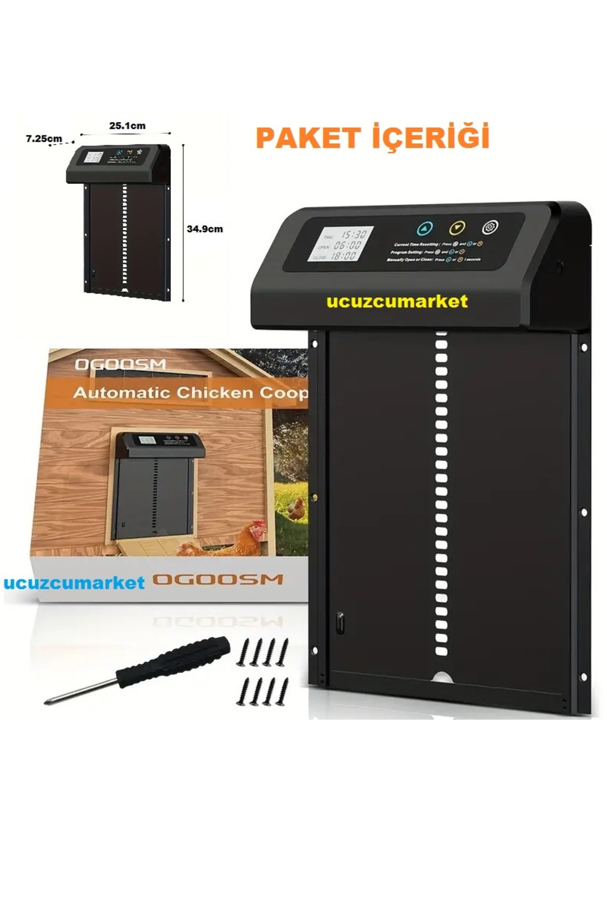 ZAMAN AYARLI DİGİTAL EKRAN KÜMES KAPISI (SIKIŞMA ÖNLEYİCİ - SU GEÇİRMEZ)
