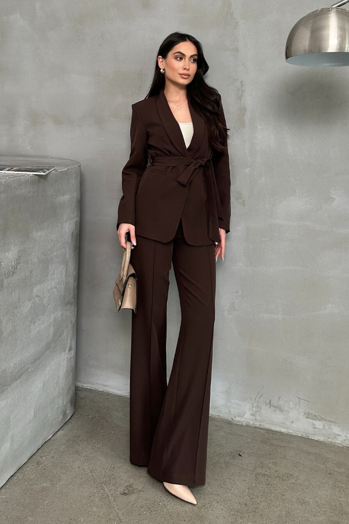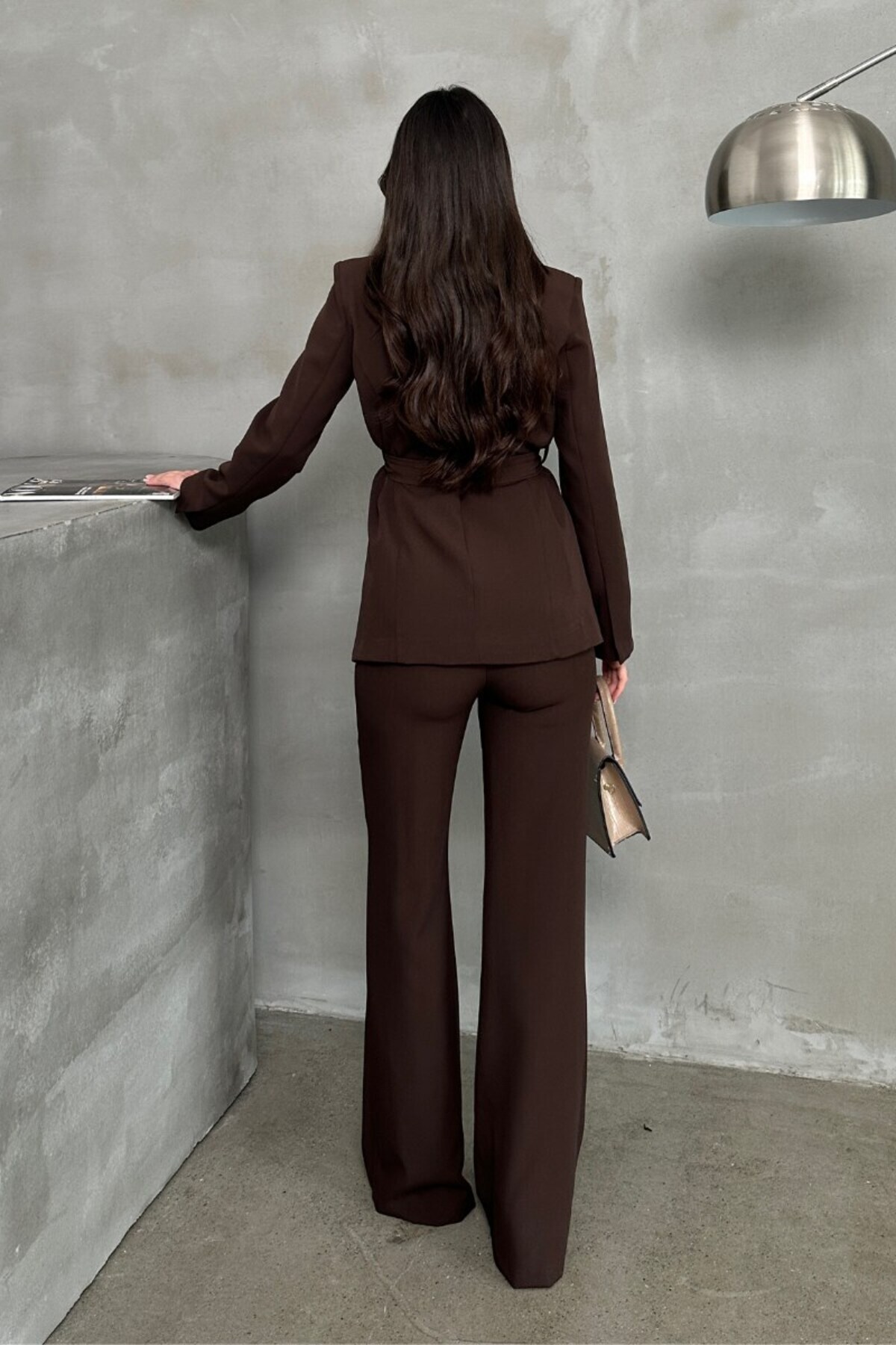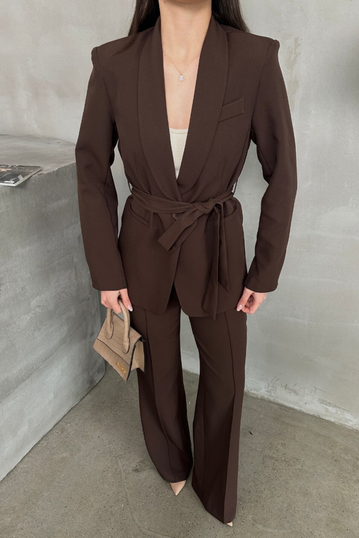 Kadın İkili Kuşaklı Blazer Ceket Pantolon Takım