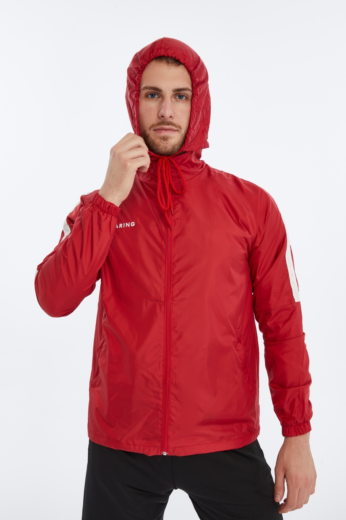 Darıng Erkek Kırmızı su geçirmez Yağmurluk-Hafif,Fermuarlı,Kapüşonlu Rüzgarlık