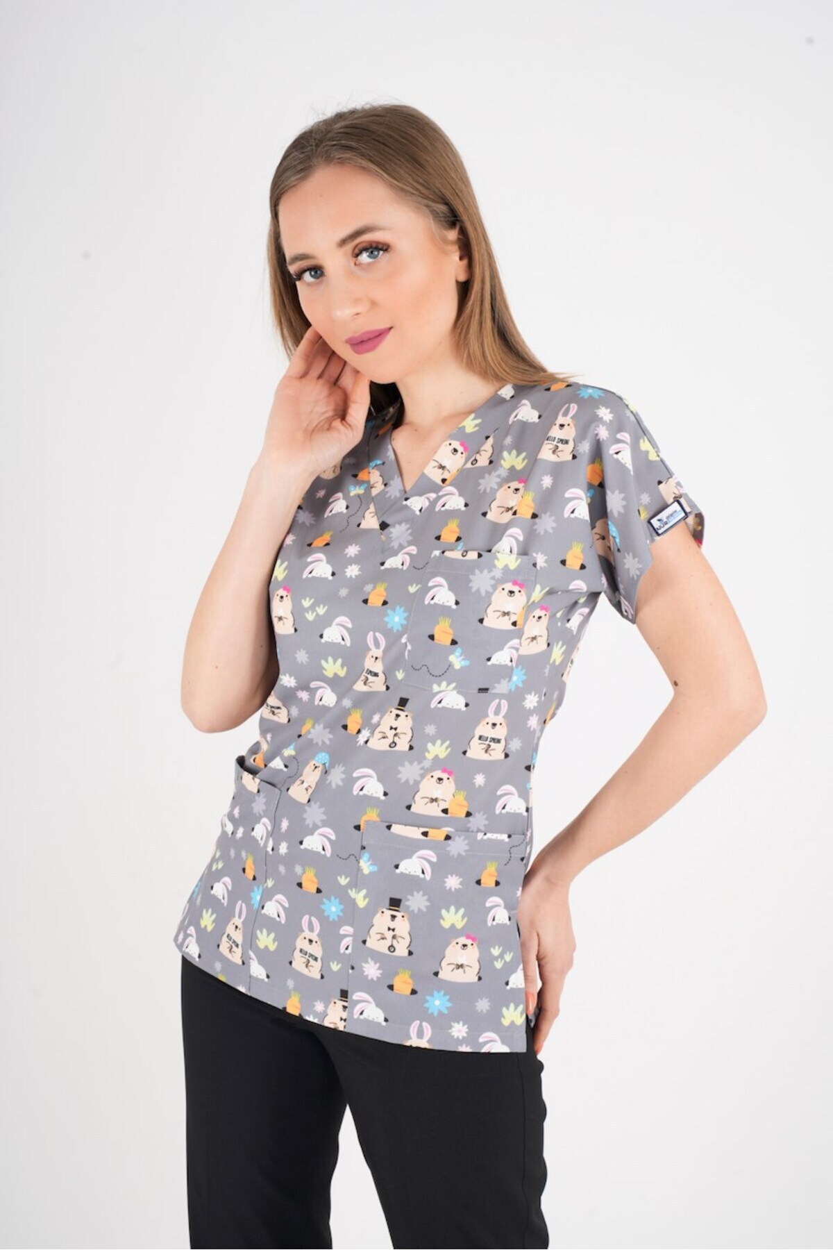 Unisex Snack Time Desenli Doktor Hemşire Hastane Aşçı Mutfak Scrubs Tek Üst Üniforma