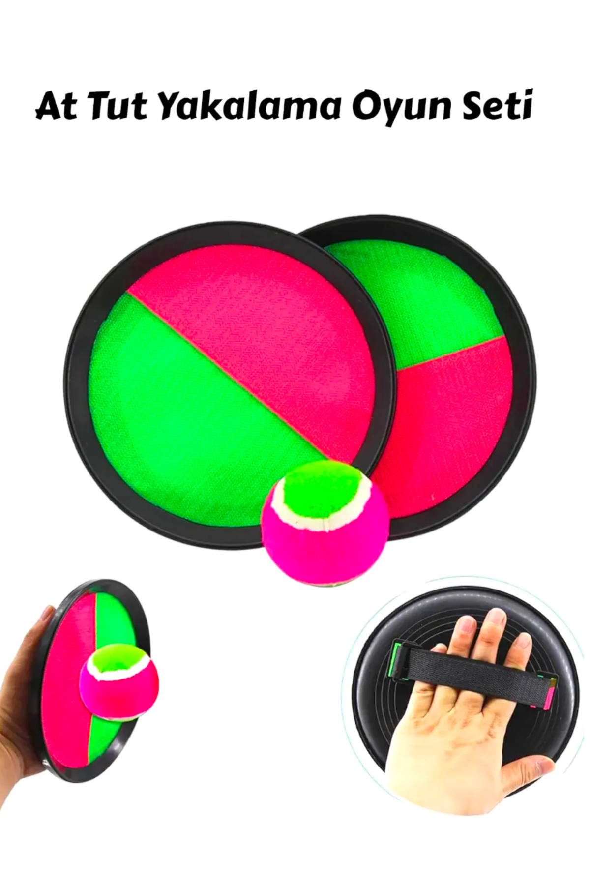 İçerisinde: 2 adet cırt cırtlı raket, 1 adet renkli top, bulunmaktadır.
