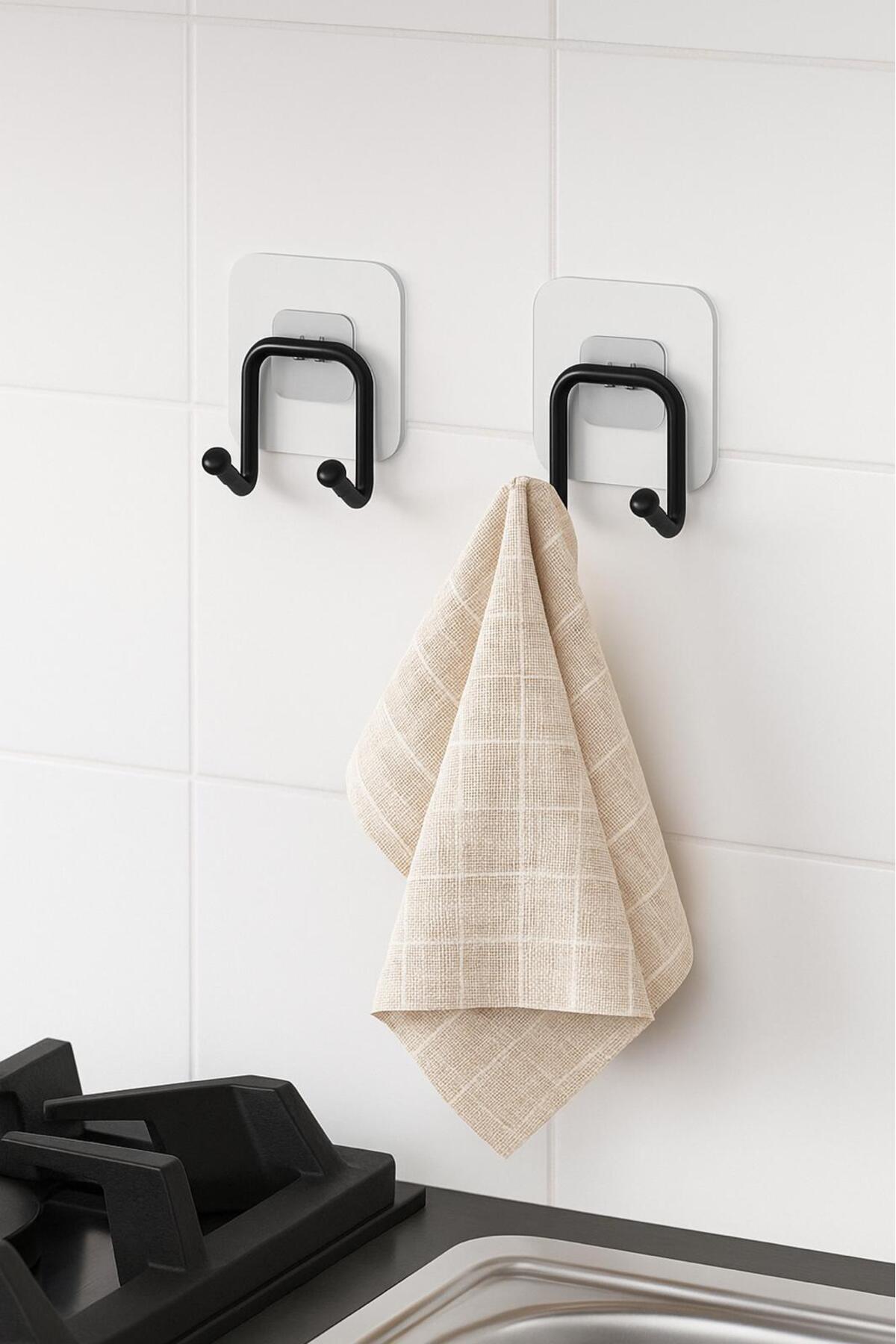 Güçlü Yapışkanlı 2 Adet Çift Kancalı Banyo Mutfak Askısı Metal Askılık Duvar Askı Organizer
