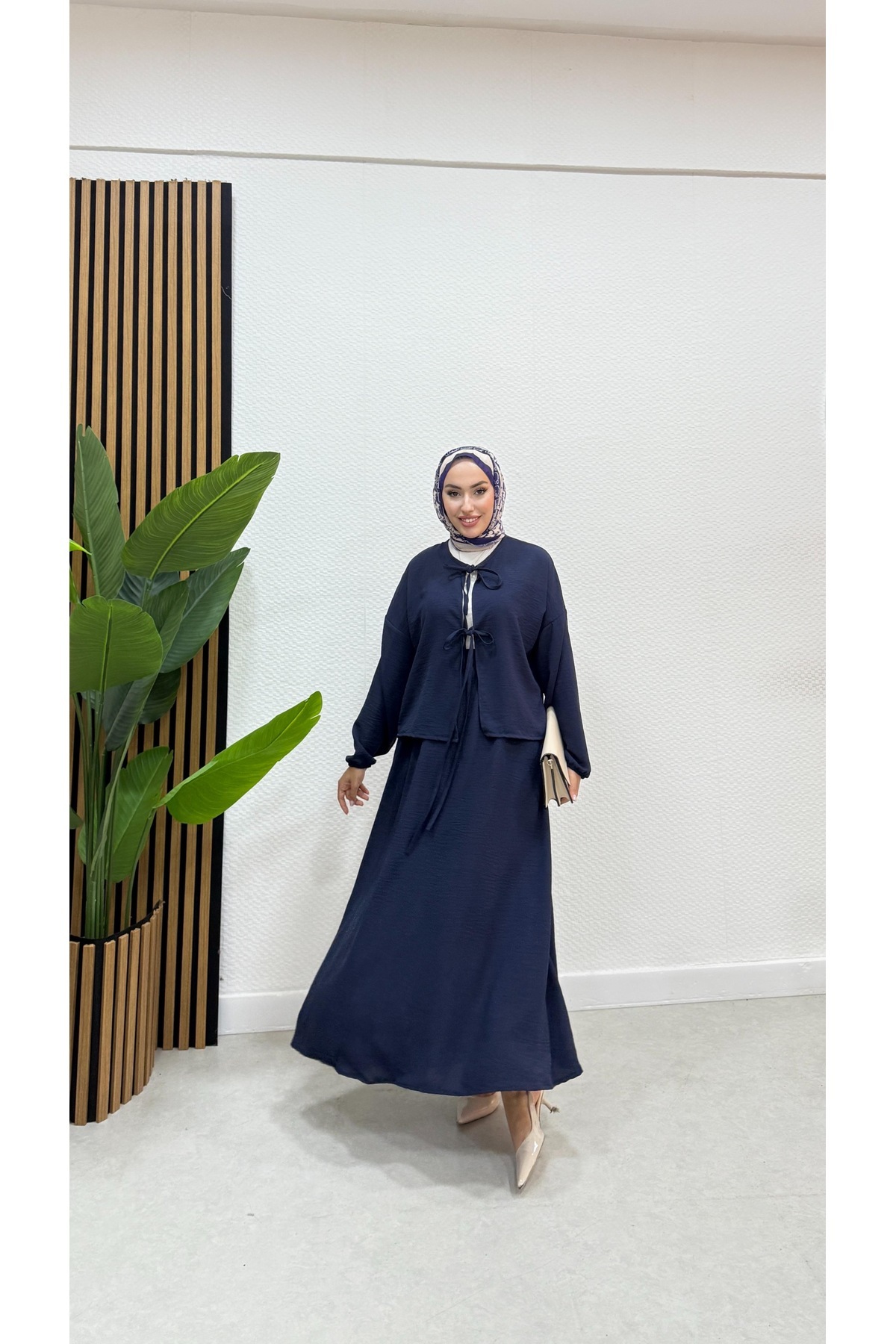 - Bağcıklı kemer detayı ile şıklığınızı tamamlayacak, günlük kullanıma uygun tesettür ikili takım.