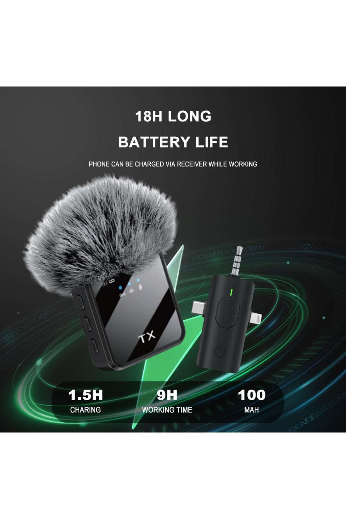 18 Saat Pil Ömrü Dahili 100mAh şarj edilebilir pile sahip mikrofon kablosuz vericisi, tek bir şarjla 9 saate kadar veya uzun çekimler sırasında 2 mikrofonla etkileyici bir 18 saat destekler.