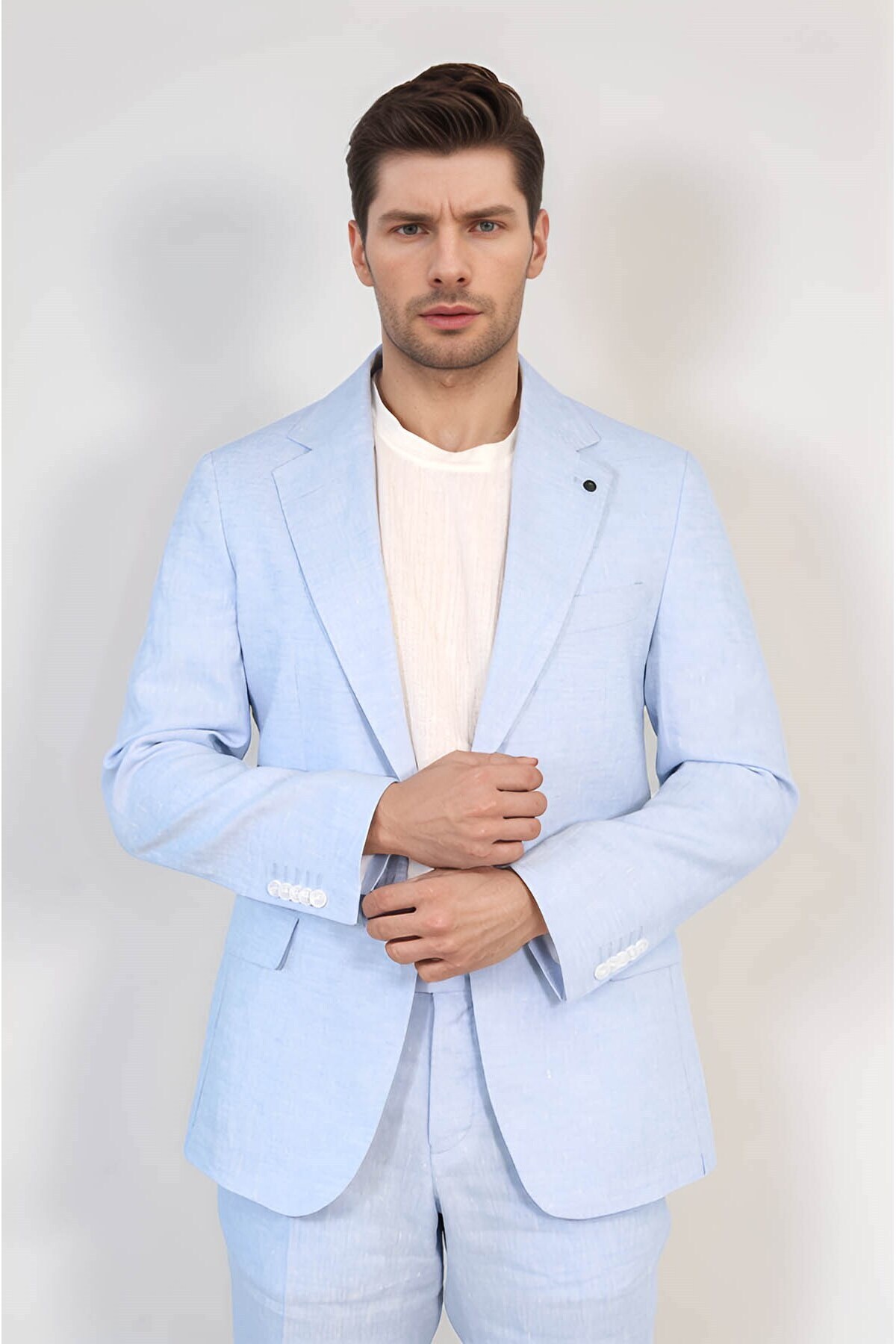 Keten/mono Yaka Çift Yırtmaç Takım A Mavi