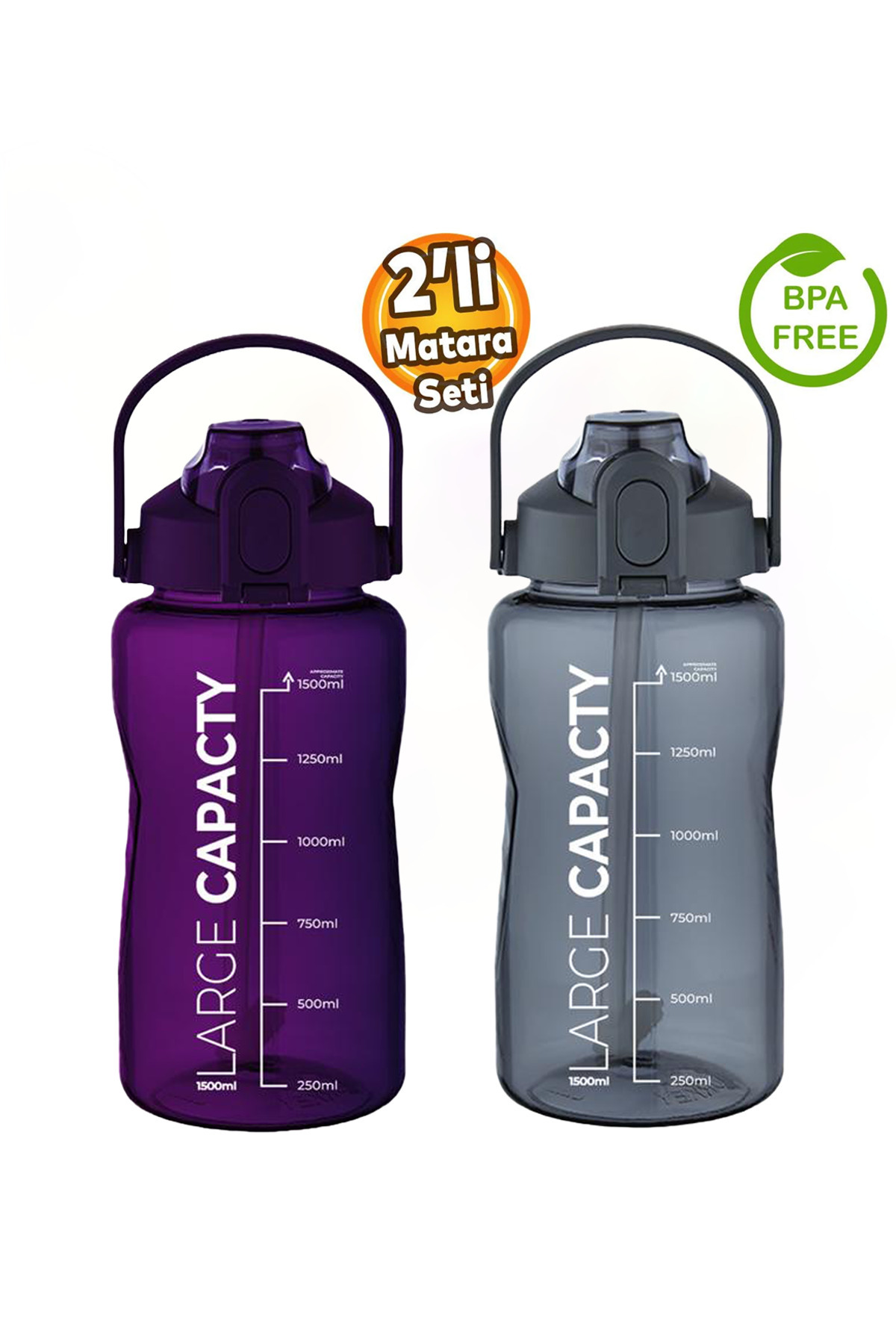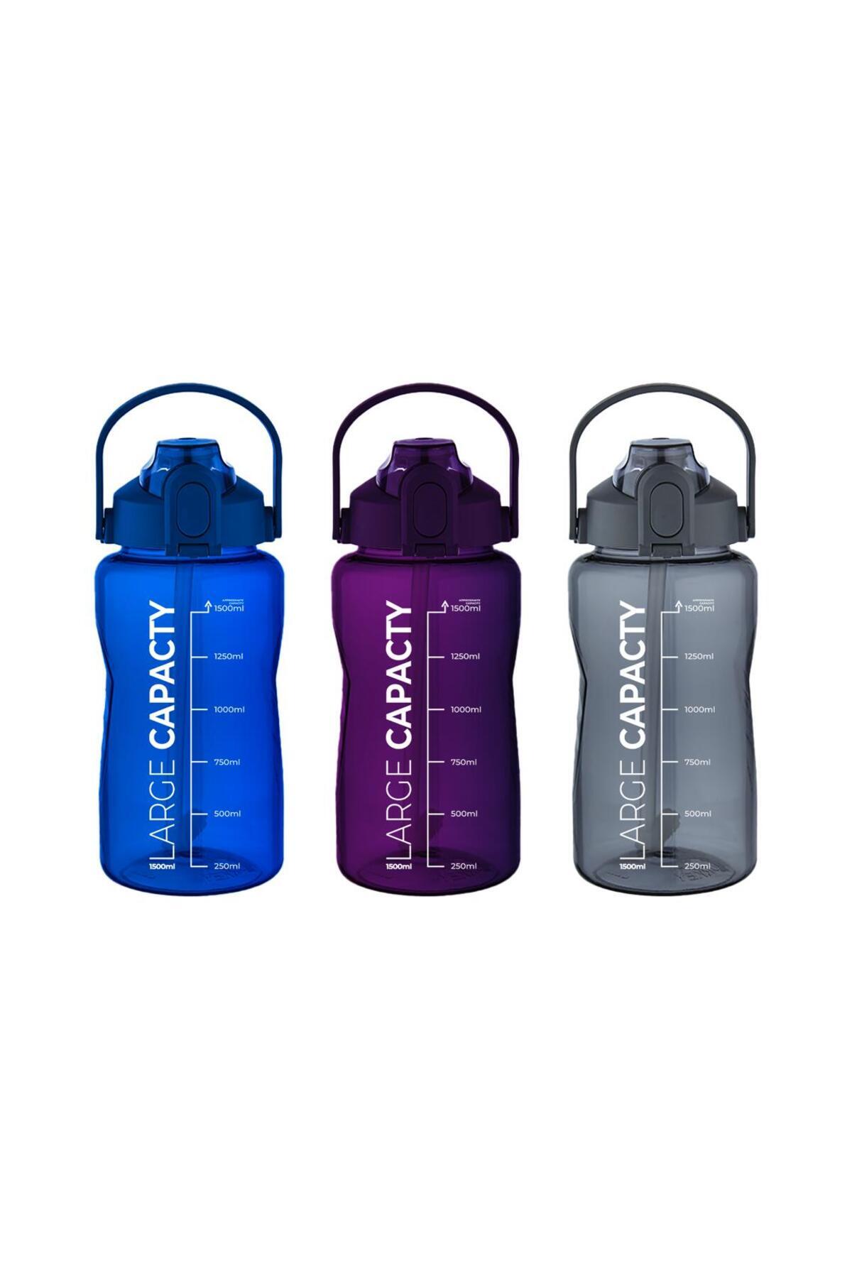 Sağlıklı Polikarbon 1.5 Litre Büyük Kapasiteli Su Matarası Pipetli Suluk Gri