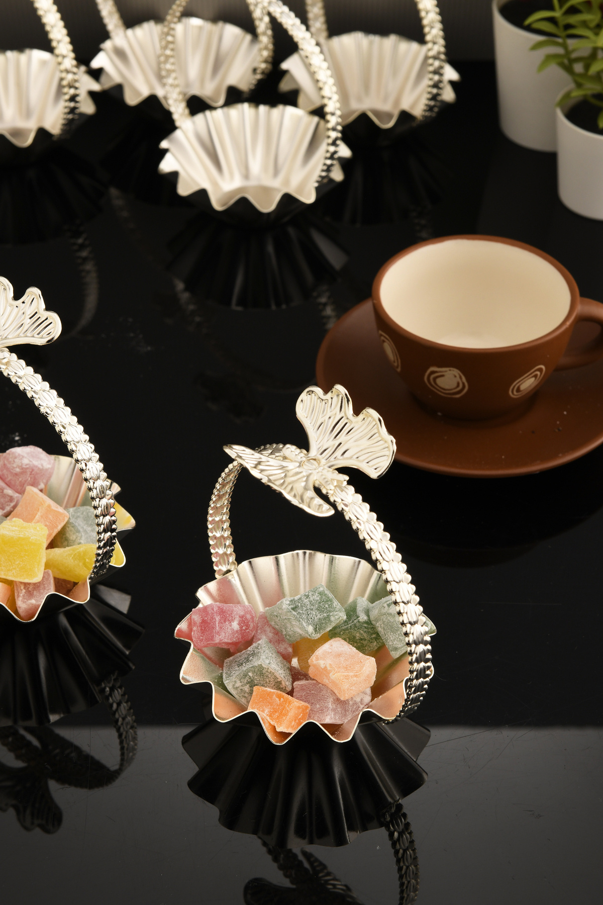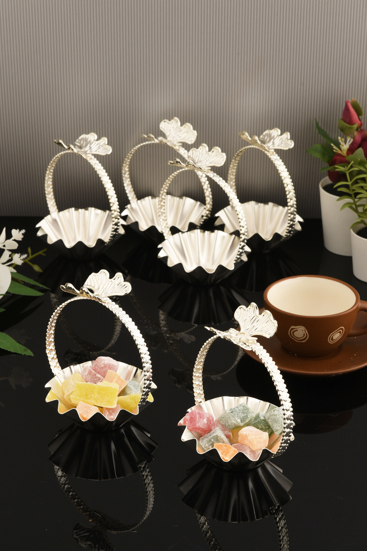Şık gümüş kaplama yüzeyi sayesinde kahve yanı, lokumluk, şekerlik ya da çikolatalık gibi sunumlarınızda estetik bir dokunuş sunar.