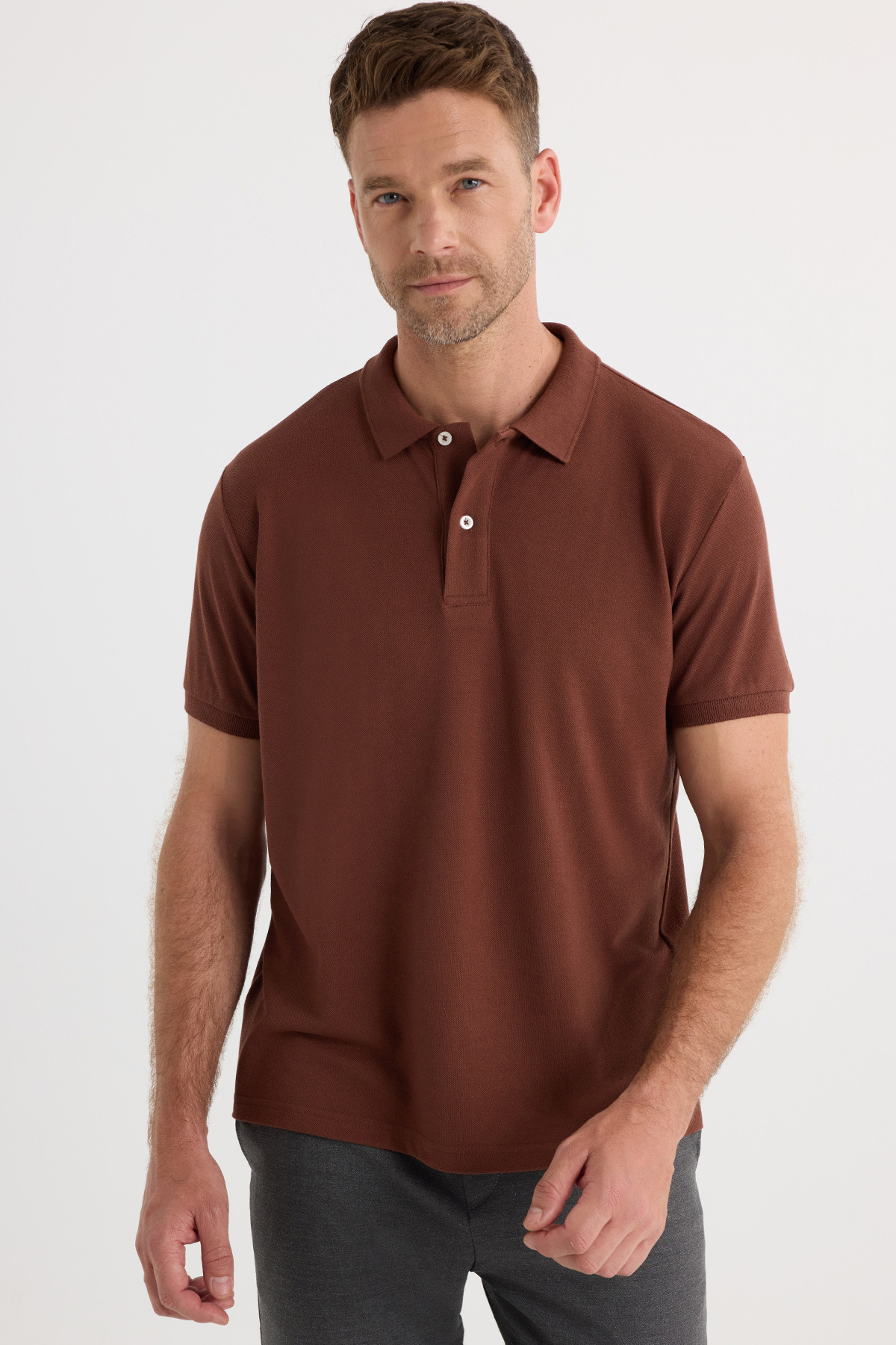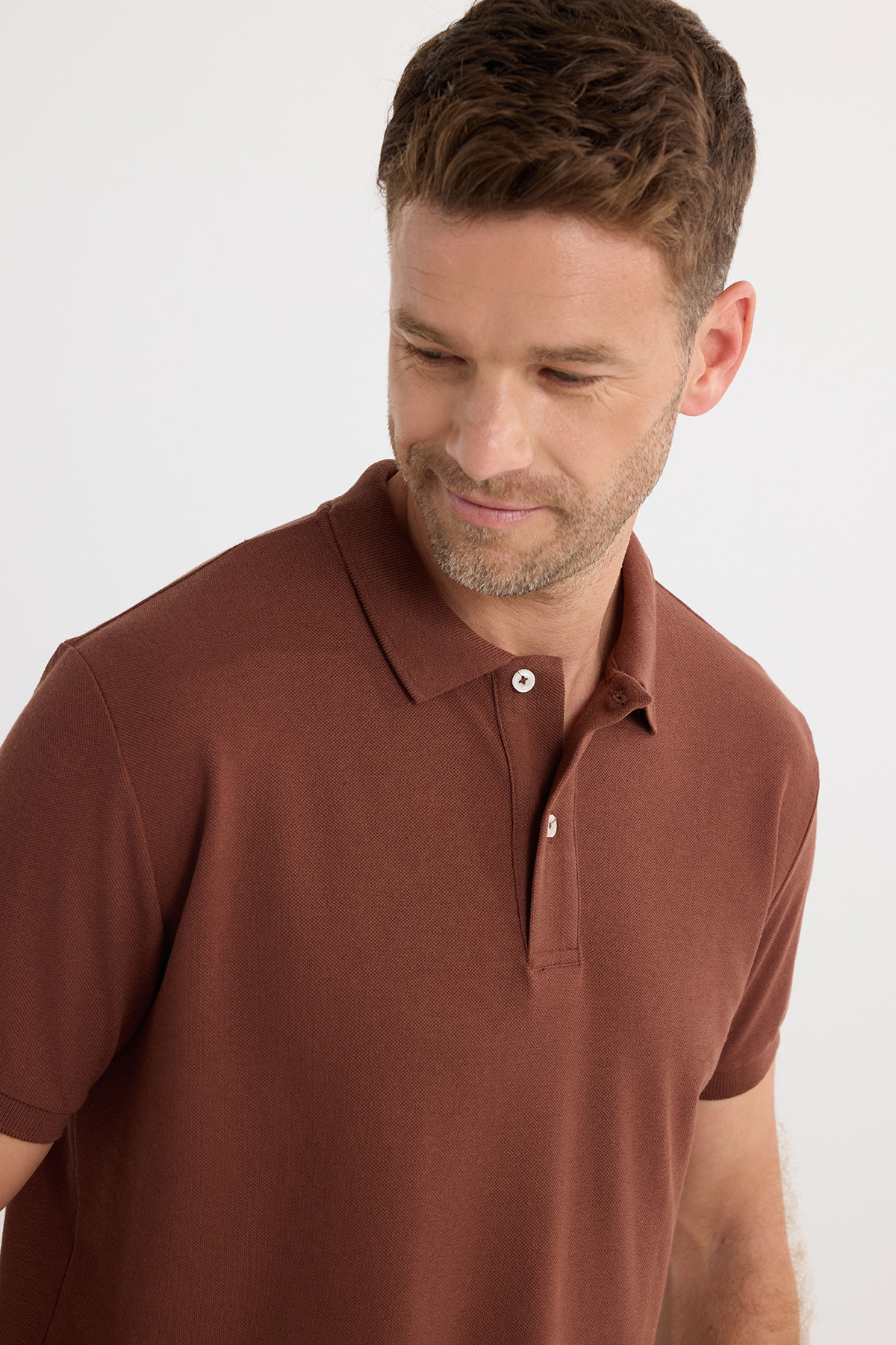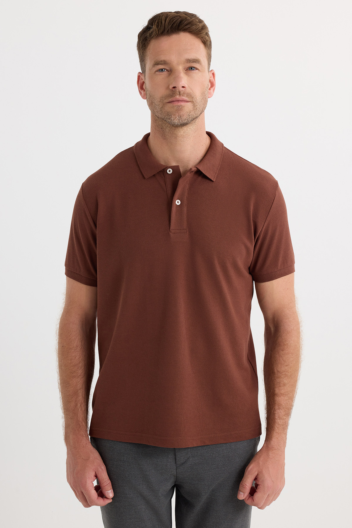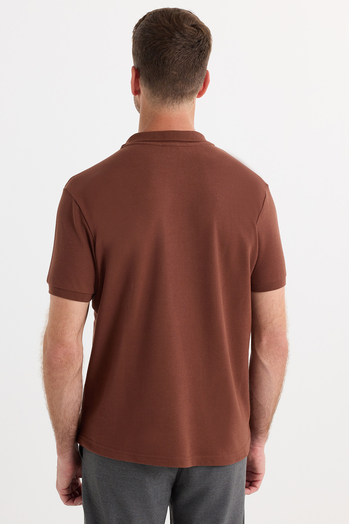 Erkek Regular Fit Klasik Kesim Pamuklu Yumuşak Doku Serin Tutan Kumaş Kahverengi Polo Yaka Tişört