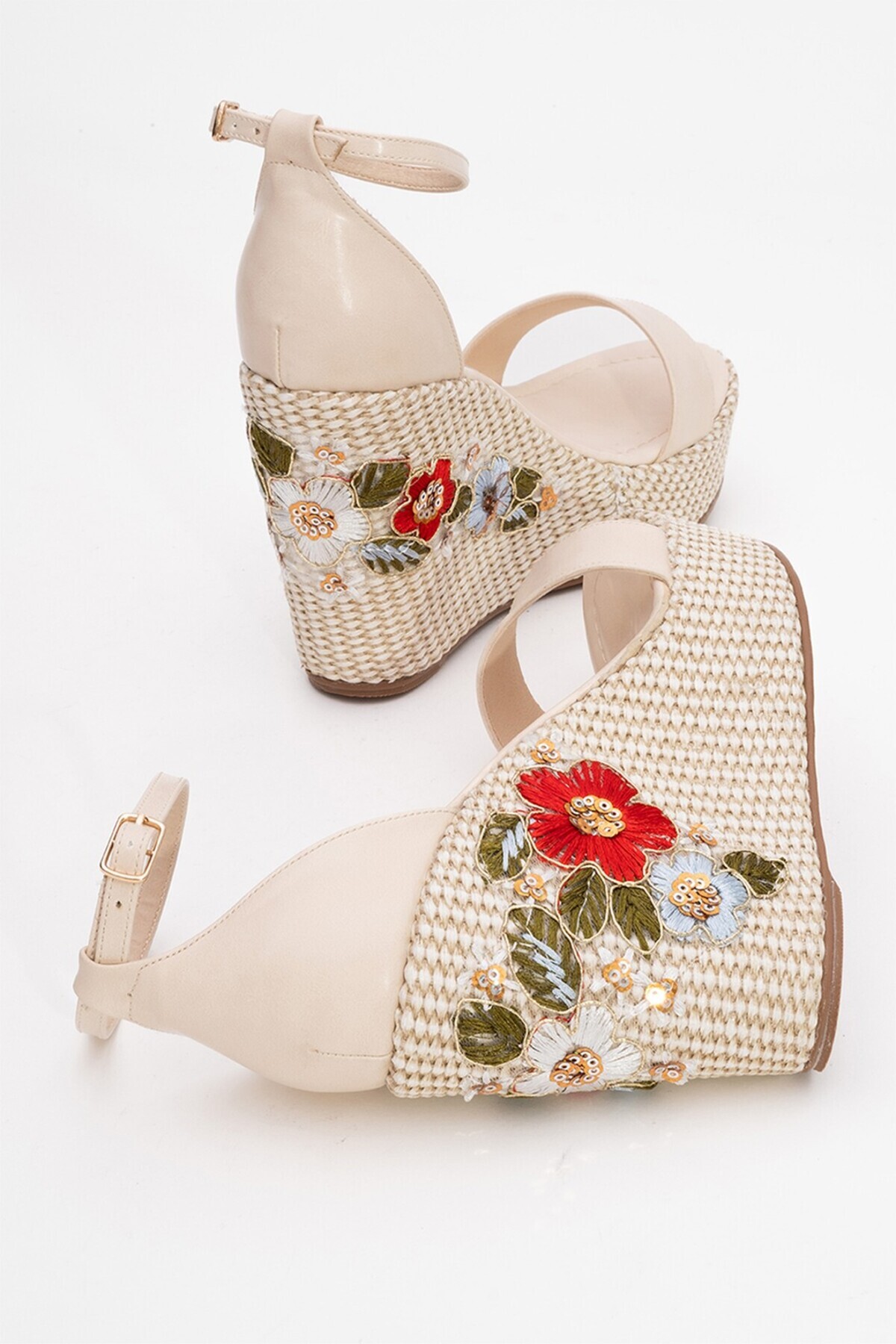 Nakış Detaylı Dolgu Topuklu Sandalet