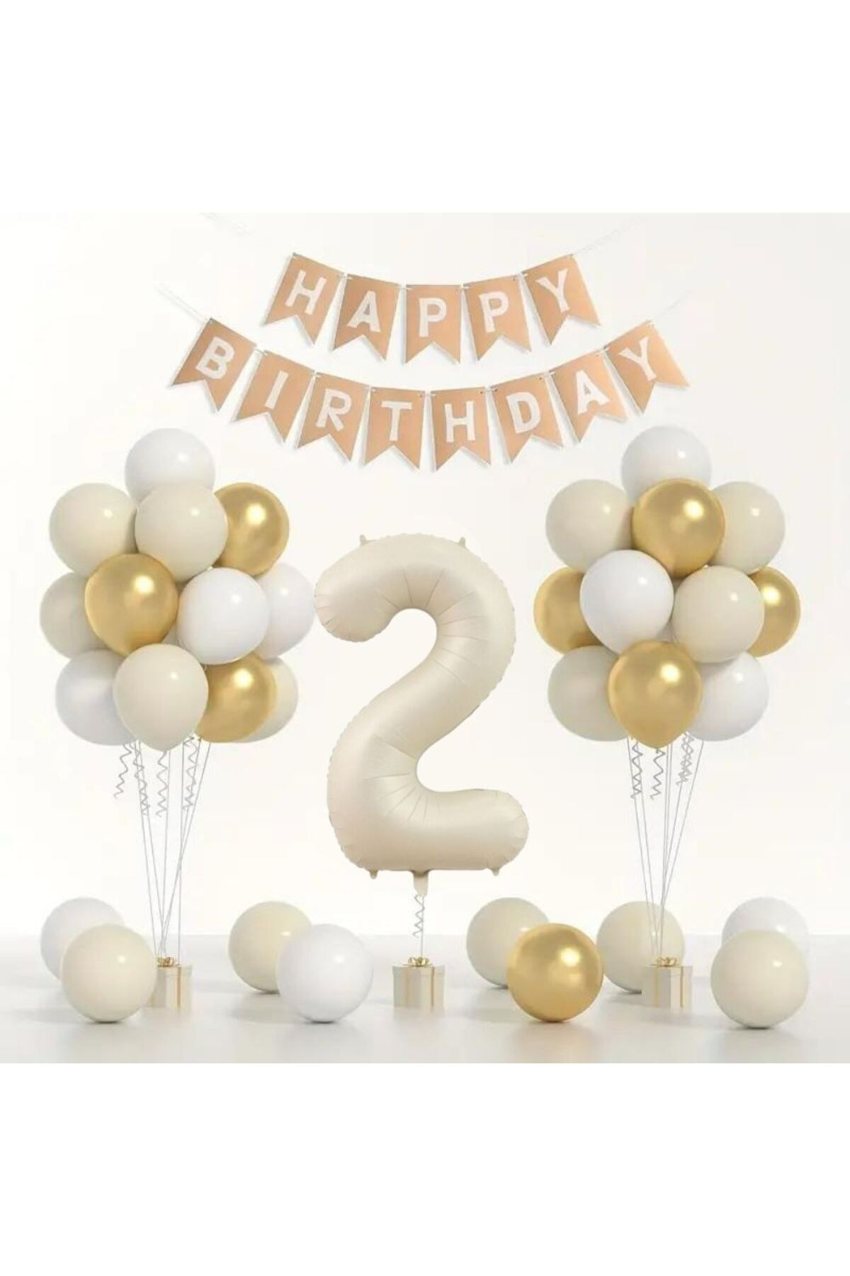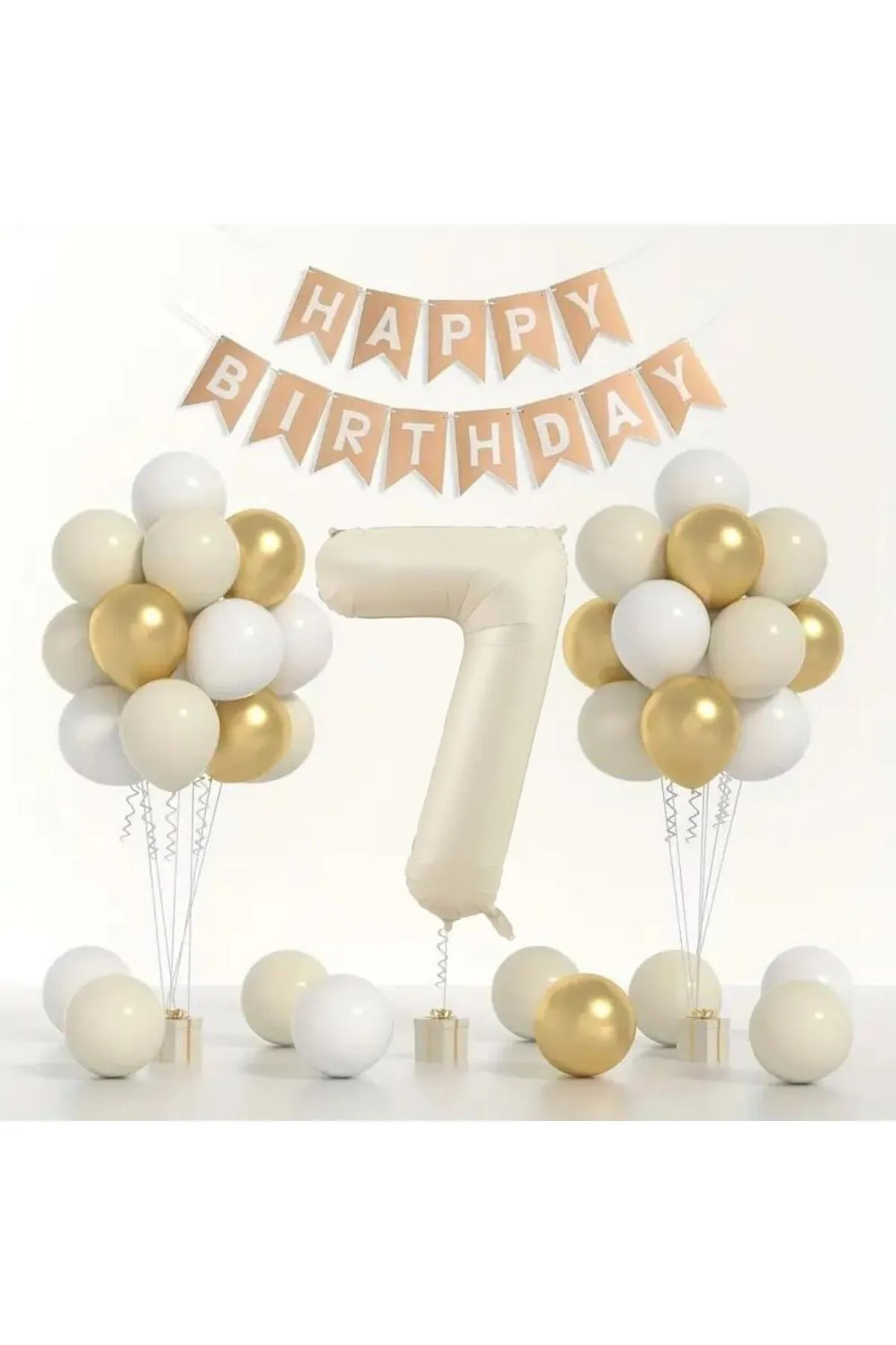 Doğum Günü Balon Seti 🎂 | Gold 🤍 Beyaz 🤎 Deniz Kumu | Rakamlı Folyo Balon ve Banner Dahil!