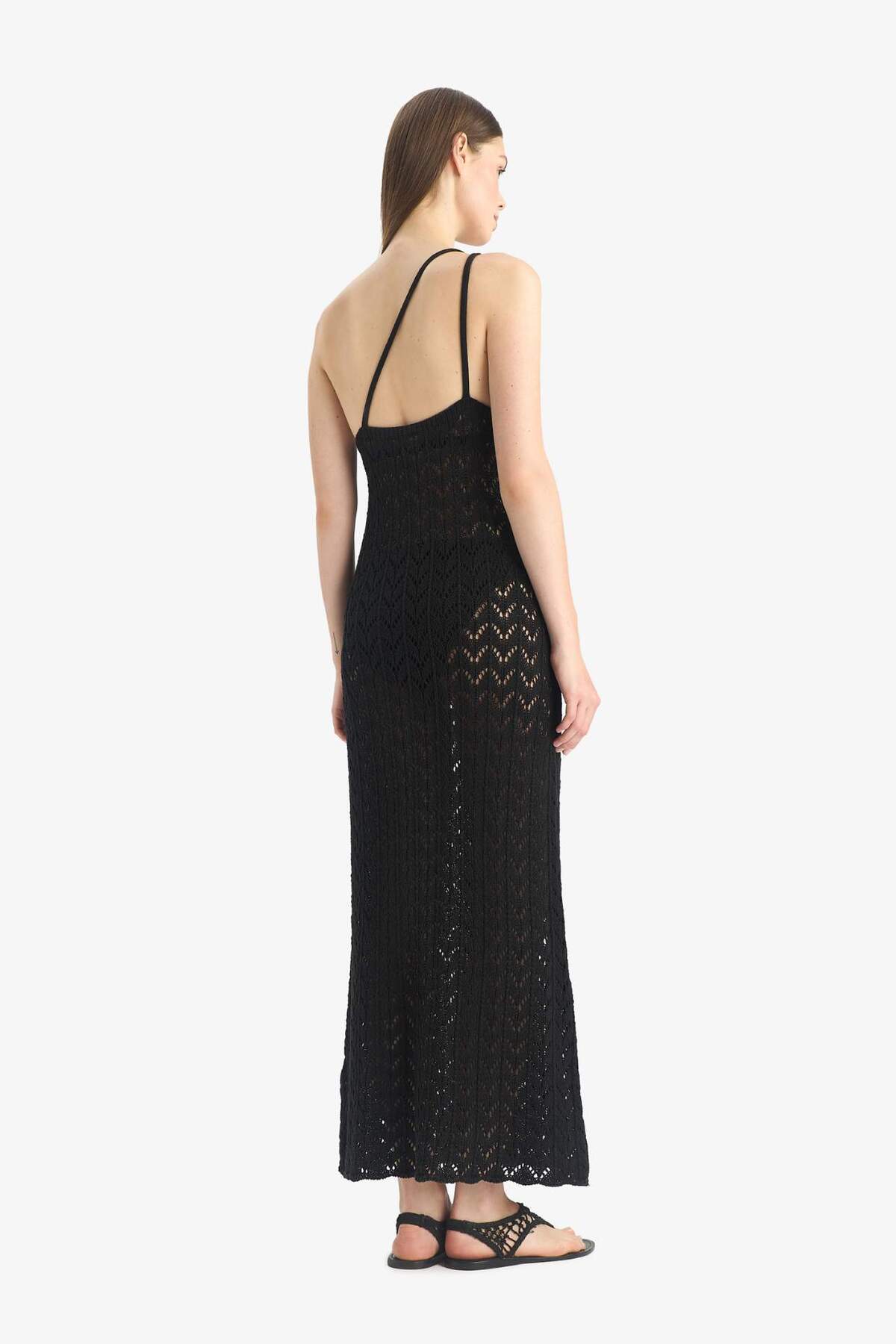 Yetişkin kadınlar için yaz tatillerinde şıklığı ve rahatlığı bir arada sunan Siyah Triko Plaj Elbisesi.