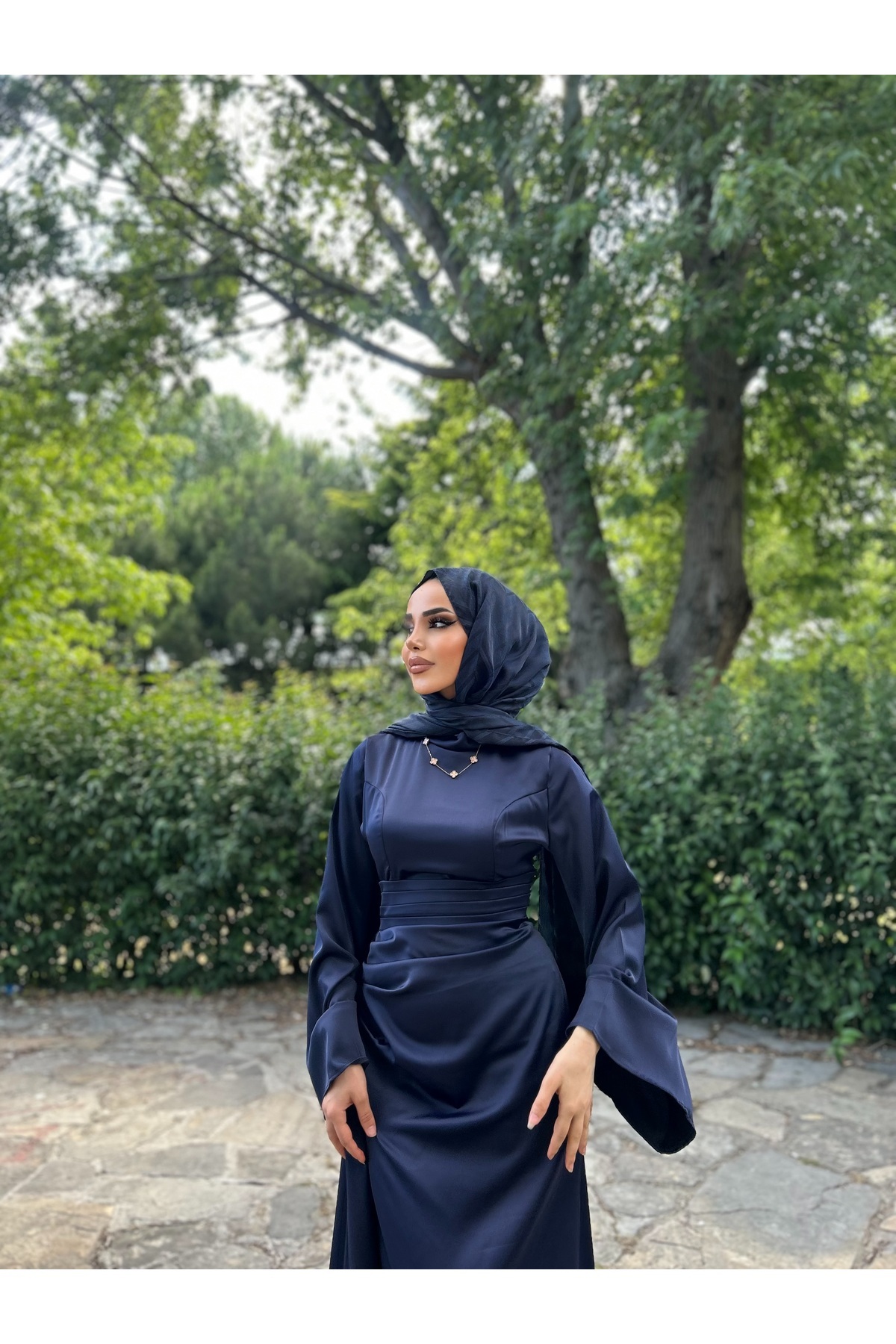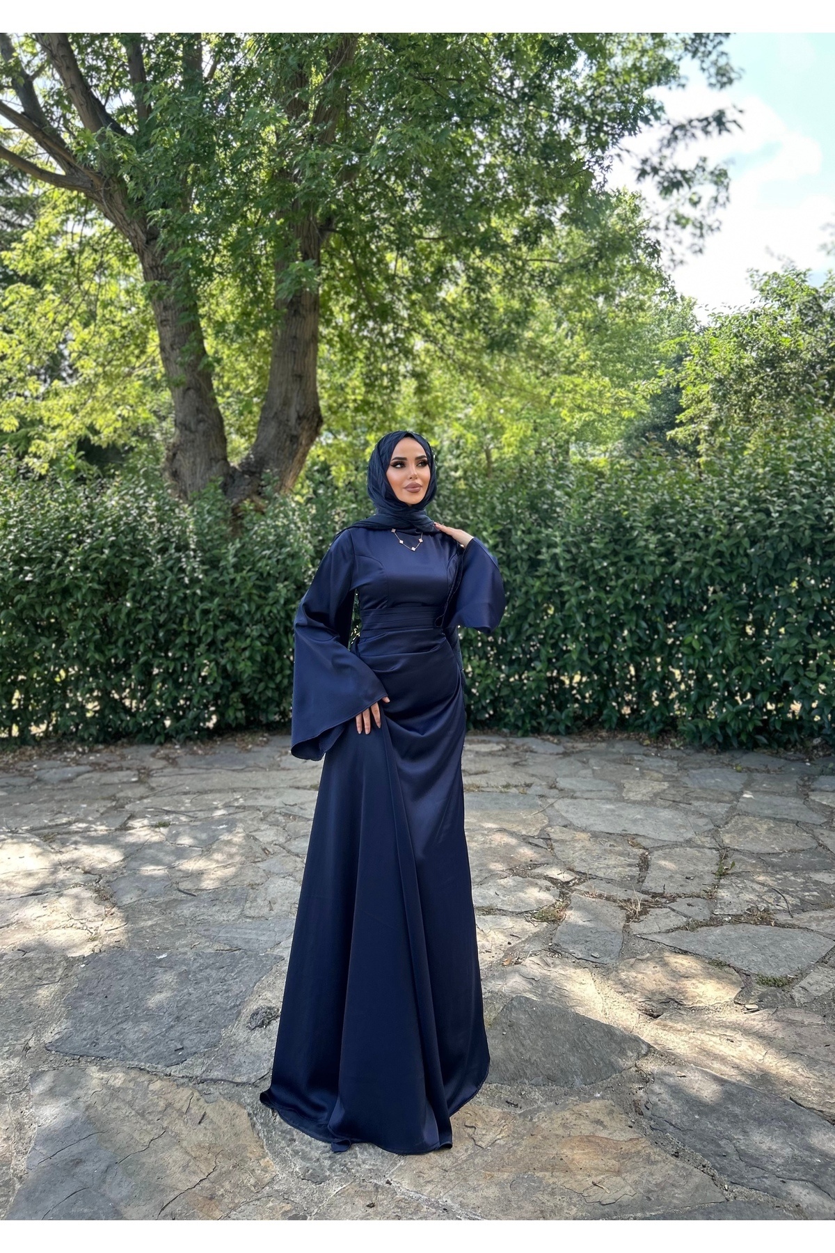 Zeyna İspanyol Kol Kuyruklu Saten Tesettür Abiye