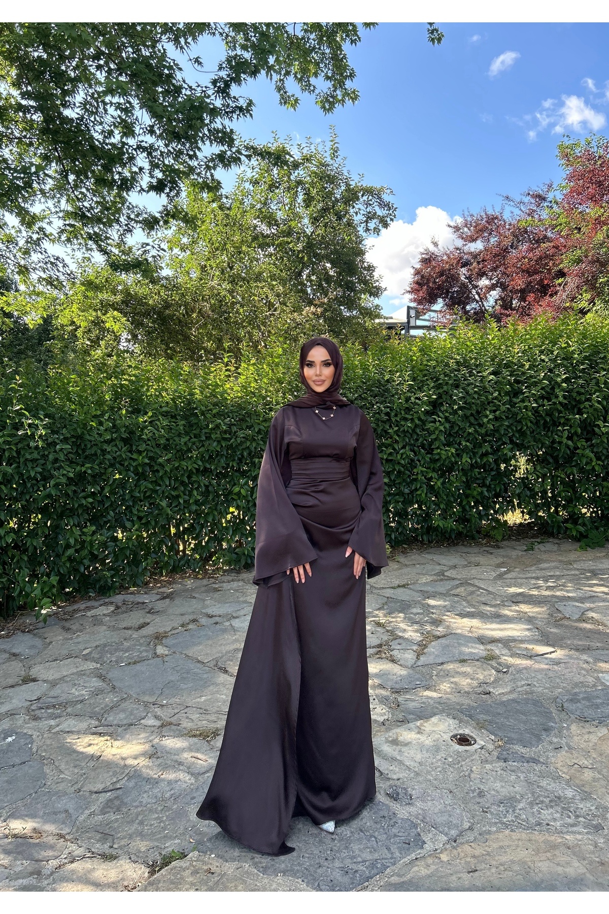 Zeyna İspanyol Kol Kuyruklu Saten Tesettür Abiye
