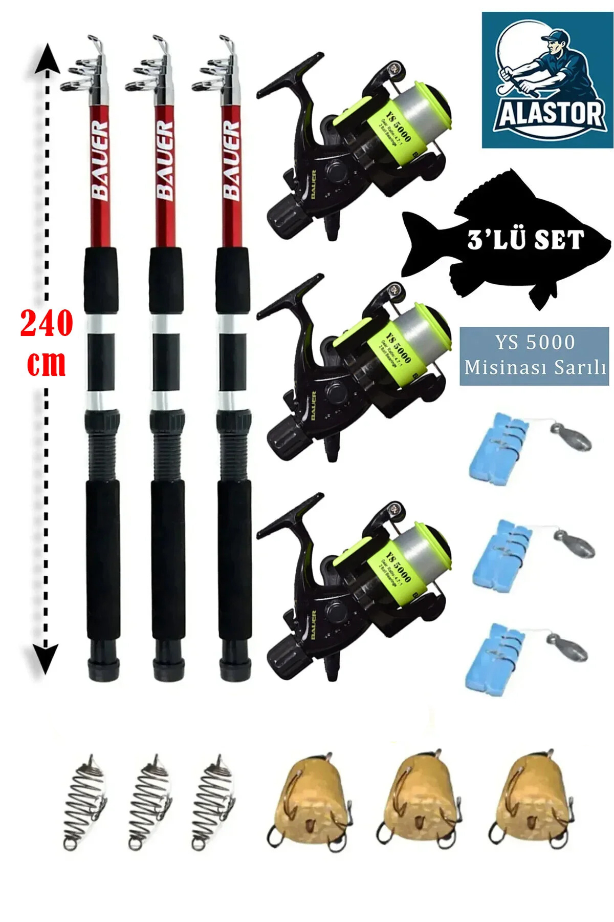 Hazır 3'Lü Olta Takımı Hazır Göl Tatlı Su Olta seti 3 X Pegasus 240cm Olta Kamışı 3 X Bauer YS5000 Olta Makinesi 3 X 3Lü Hazır İğne Takımı Kurşunlu 3 X Yaylı Takım Hazır 3 X Küspe İğneli Hazır Set içeriğinde toplam 18 adet ürün vardır