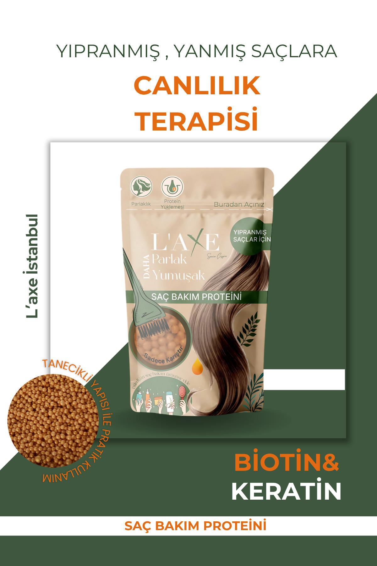 Yıpranmış - Yanmış Saçlara Canlılık Terapisi | Saç Bakım Proteini | 50 Gram