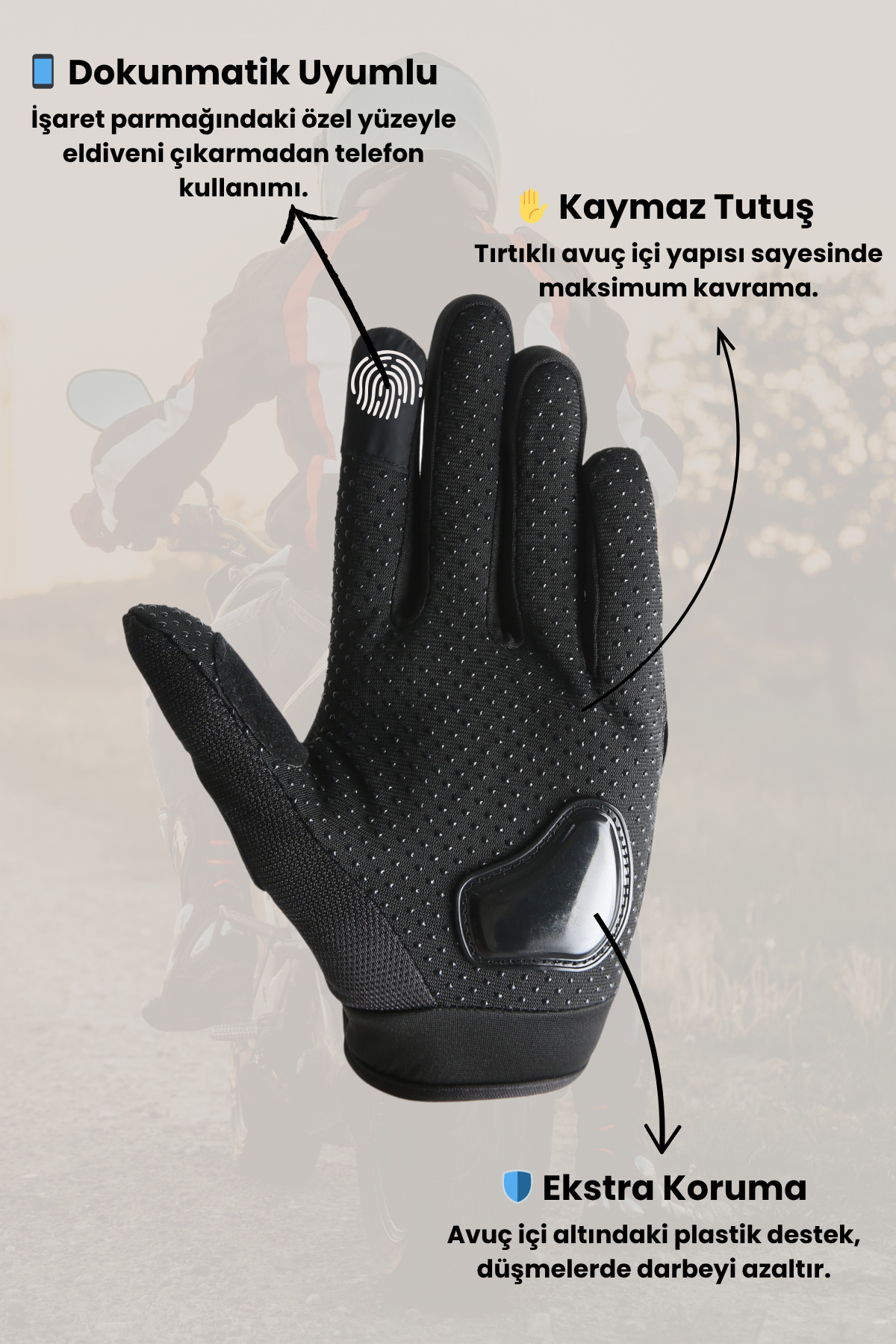 Tam Parmak Korumalı ve Nefes Alabilen Telefon Uyumlu 4Mevsim Siyah Motosiklet & Bisiklet Eldiveni