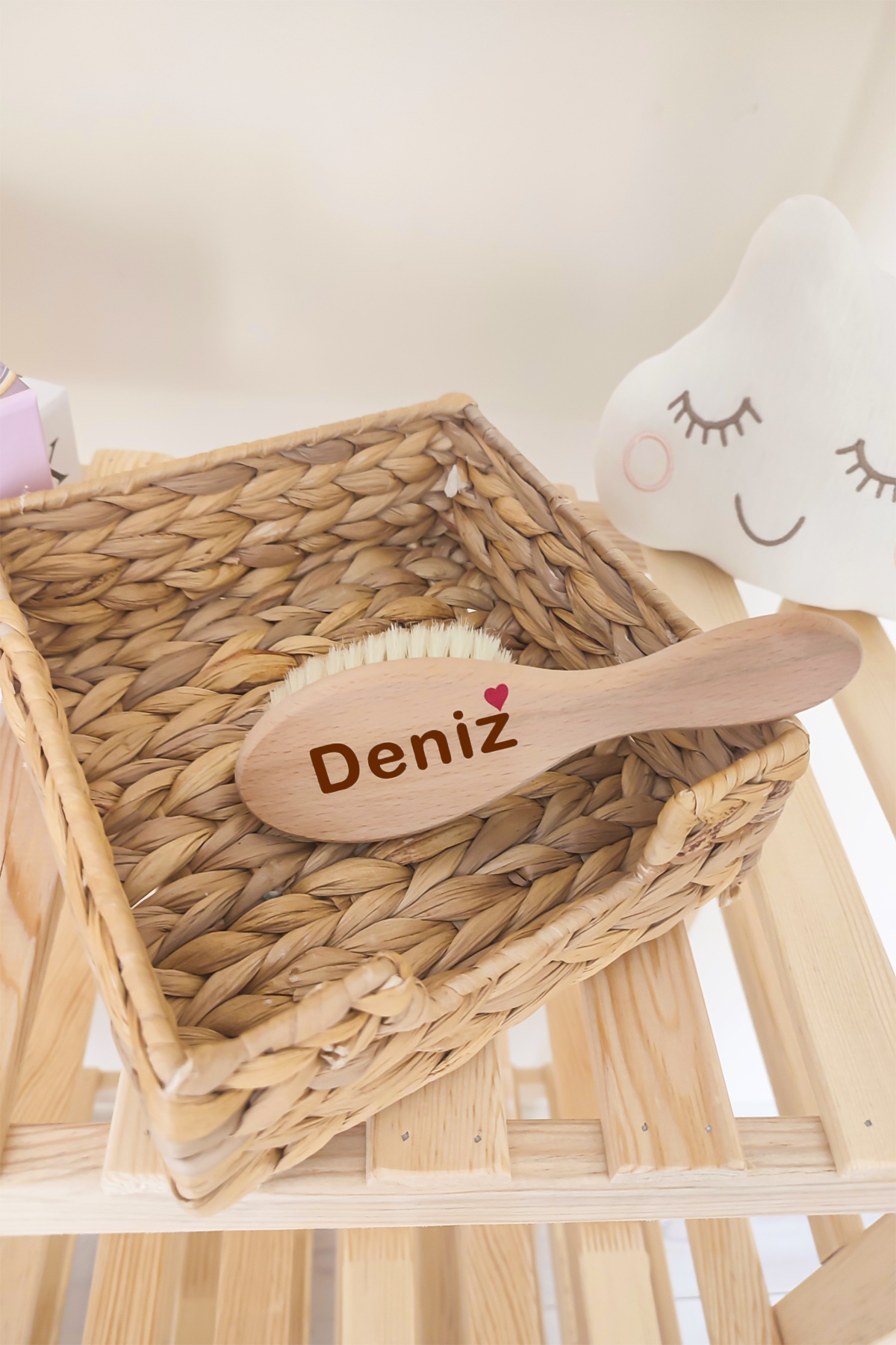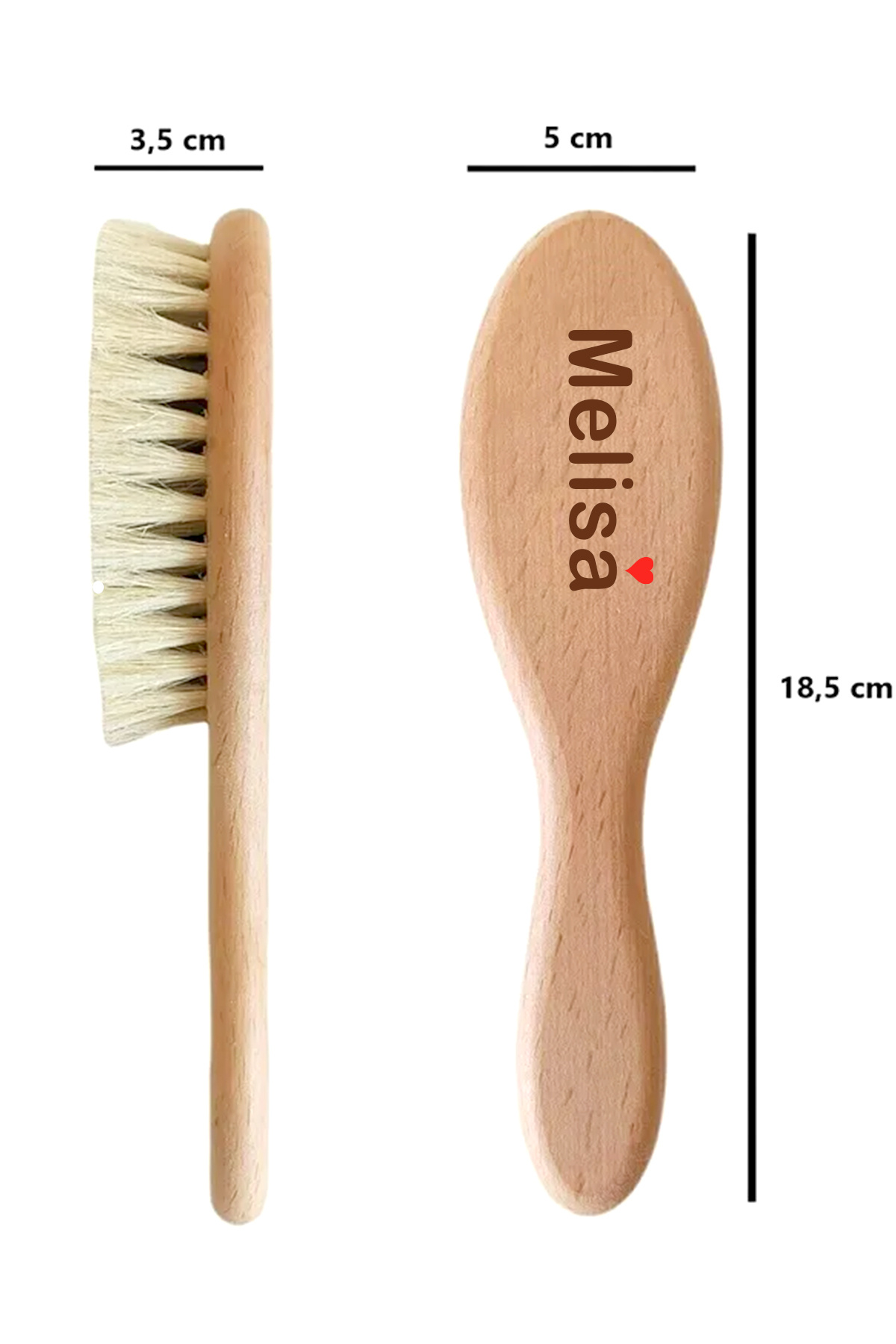 İsme Özel %100 Doğal Keçi Kılı Bebek Saç Fırçası ve Ahşap Tarak Seti | Yumuşak & Hassas Dokunuş | Ye