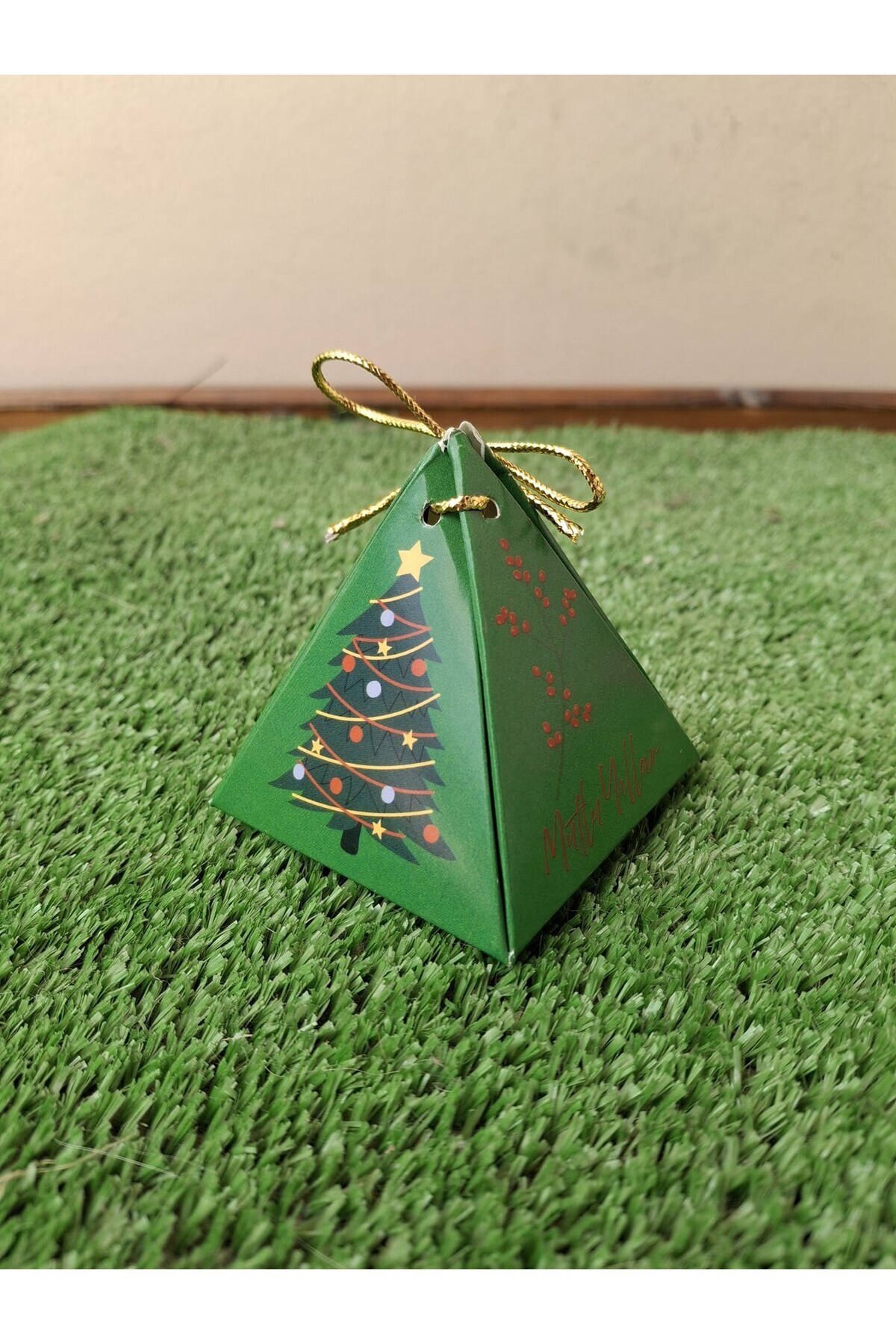 Çam Ağacı Geyikli Yeşil 10'lu Piramit Kutu - Hediye Kutusu - Yılbaşı Kutusu - Yılbaşı Hediyesi