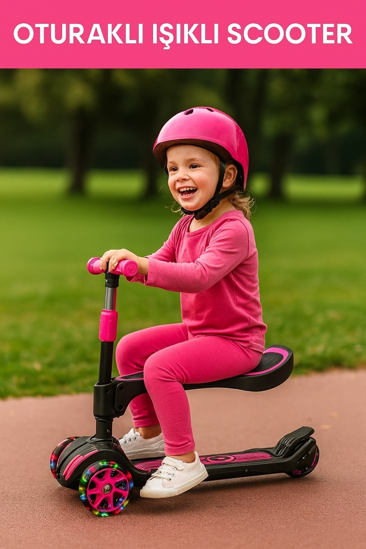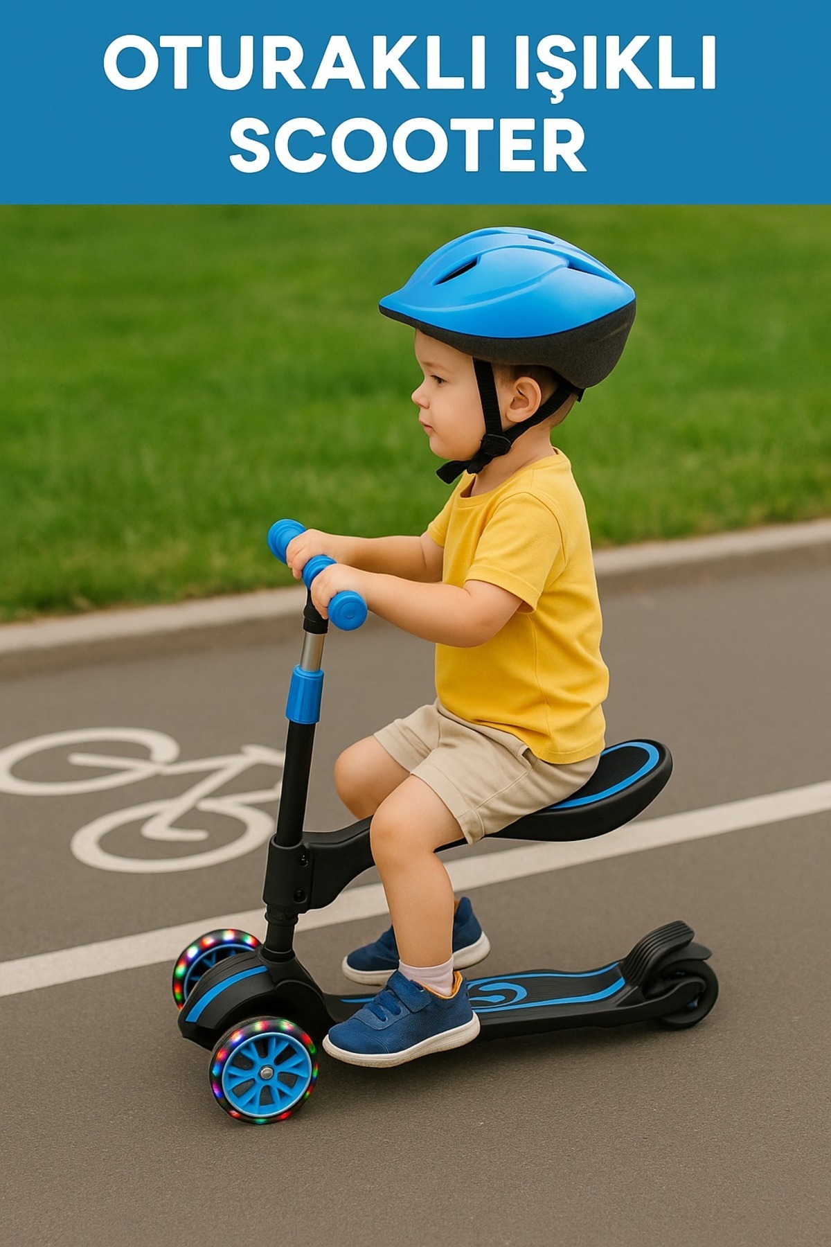 Oturaklı Scooter Işıklı 3 Tekerlekli Combo Scooter 3+ Yaş
