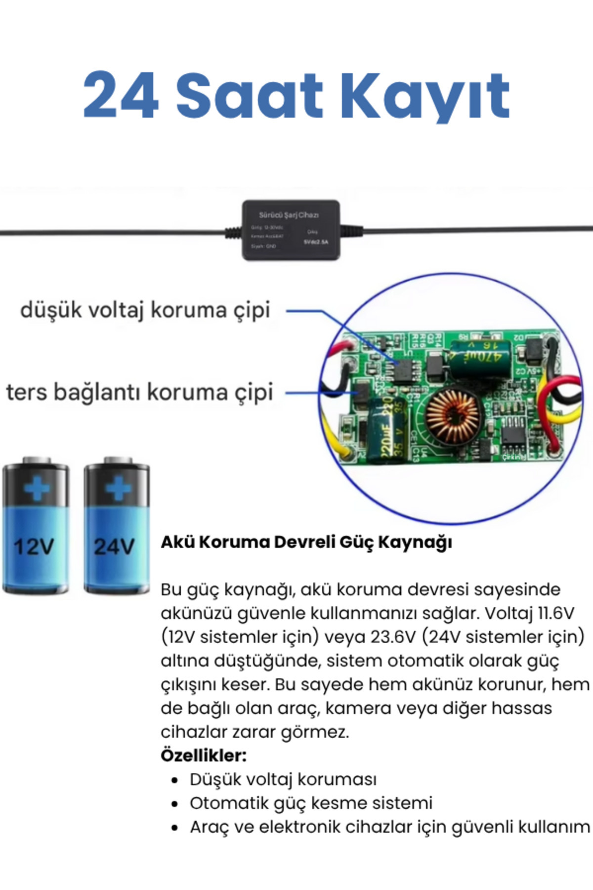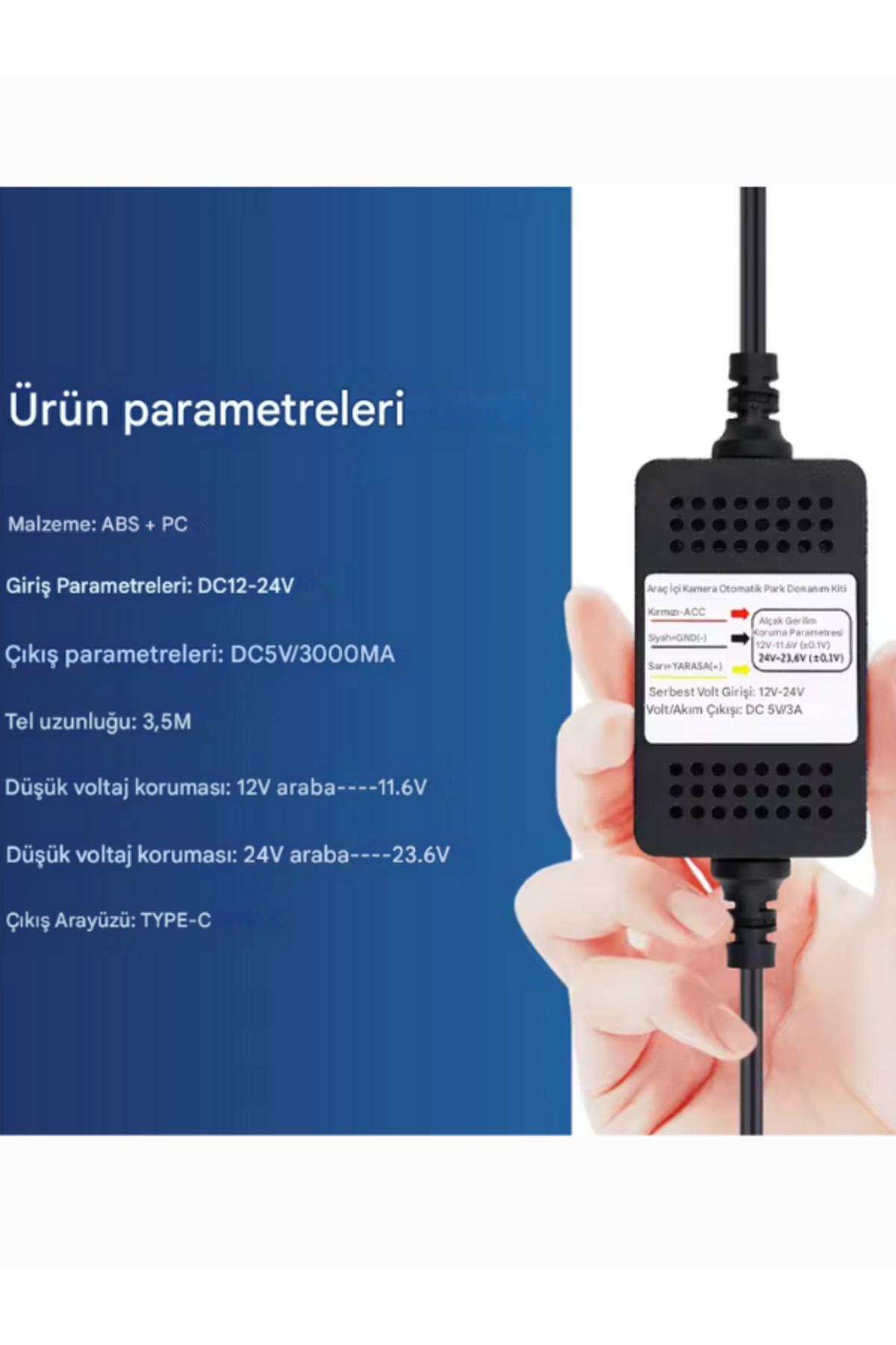 Park Modu Kablosu USB Type-C Akü Sigorta Bağlantı Kablosu Araç İçi Kamera Kiti Tüm Kameralara Uyumlu