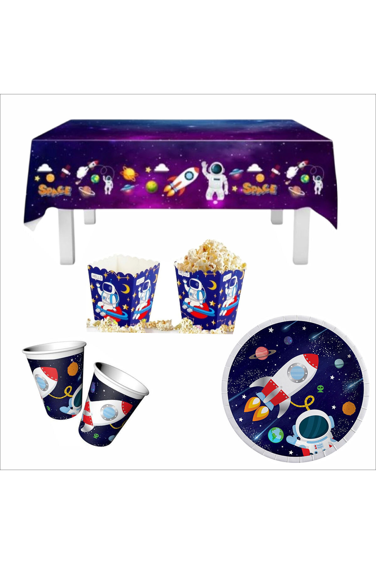 Uzay Temalı Tabak Bardak Masa örtüsü Ve Mısır Kutusu
