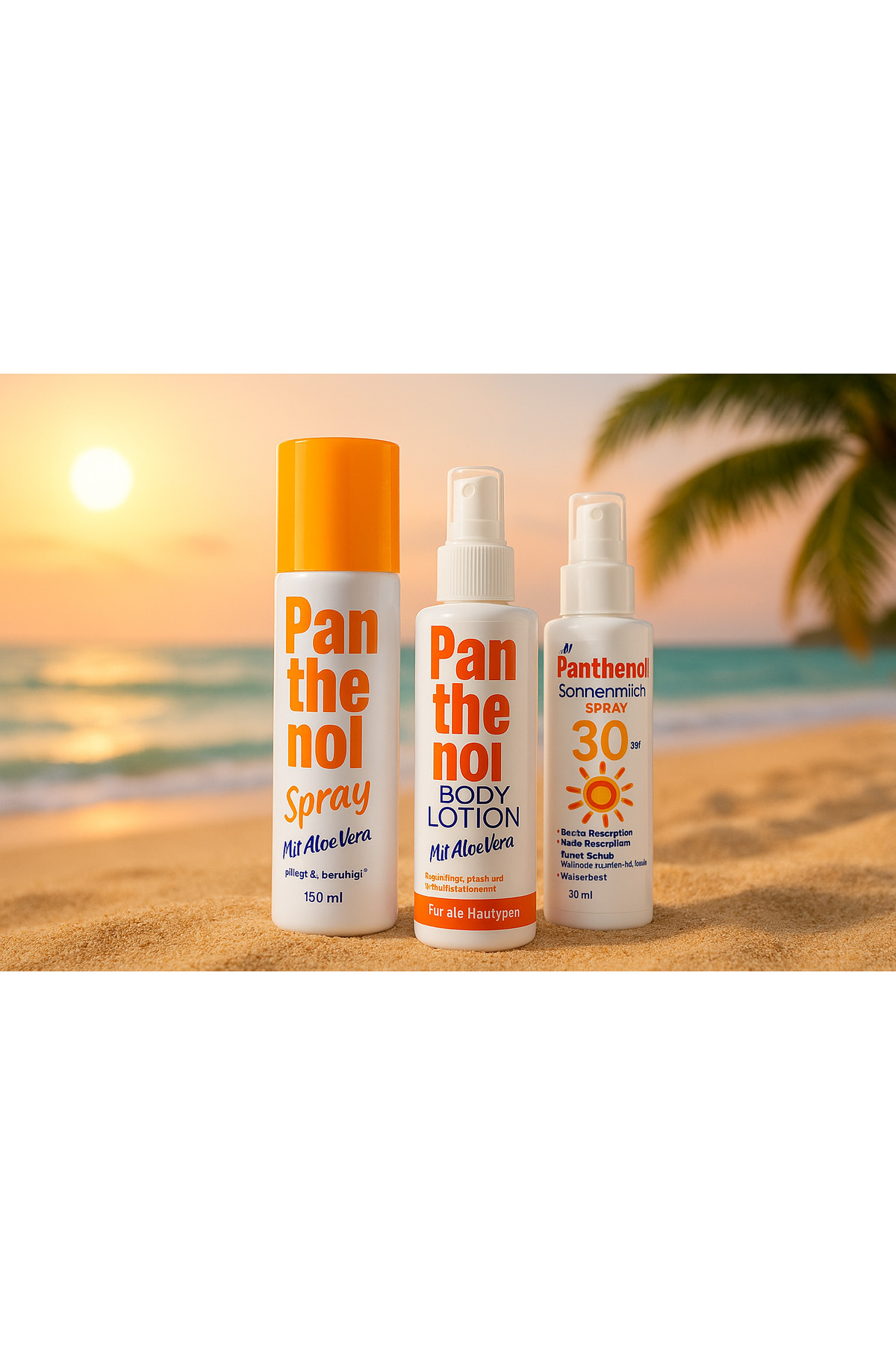 - 3'lü set içeriği ile sprey body lotion, panthenol güneş sütü ve SPF 20-40 koruma faktörlü güneş spreyini tek pakette buluşturur