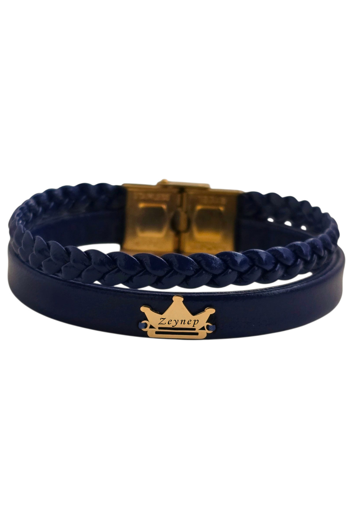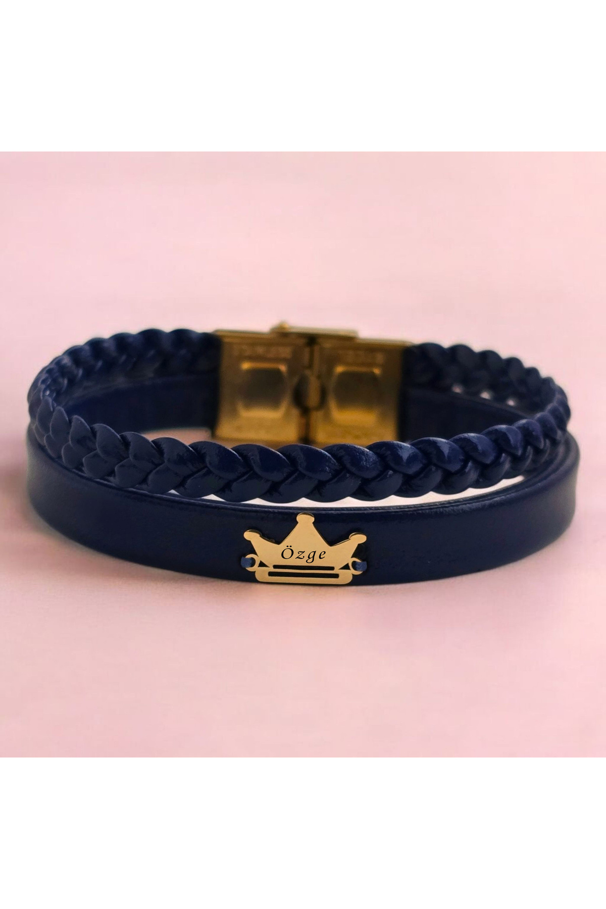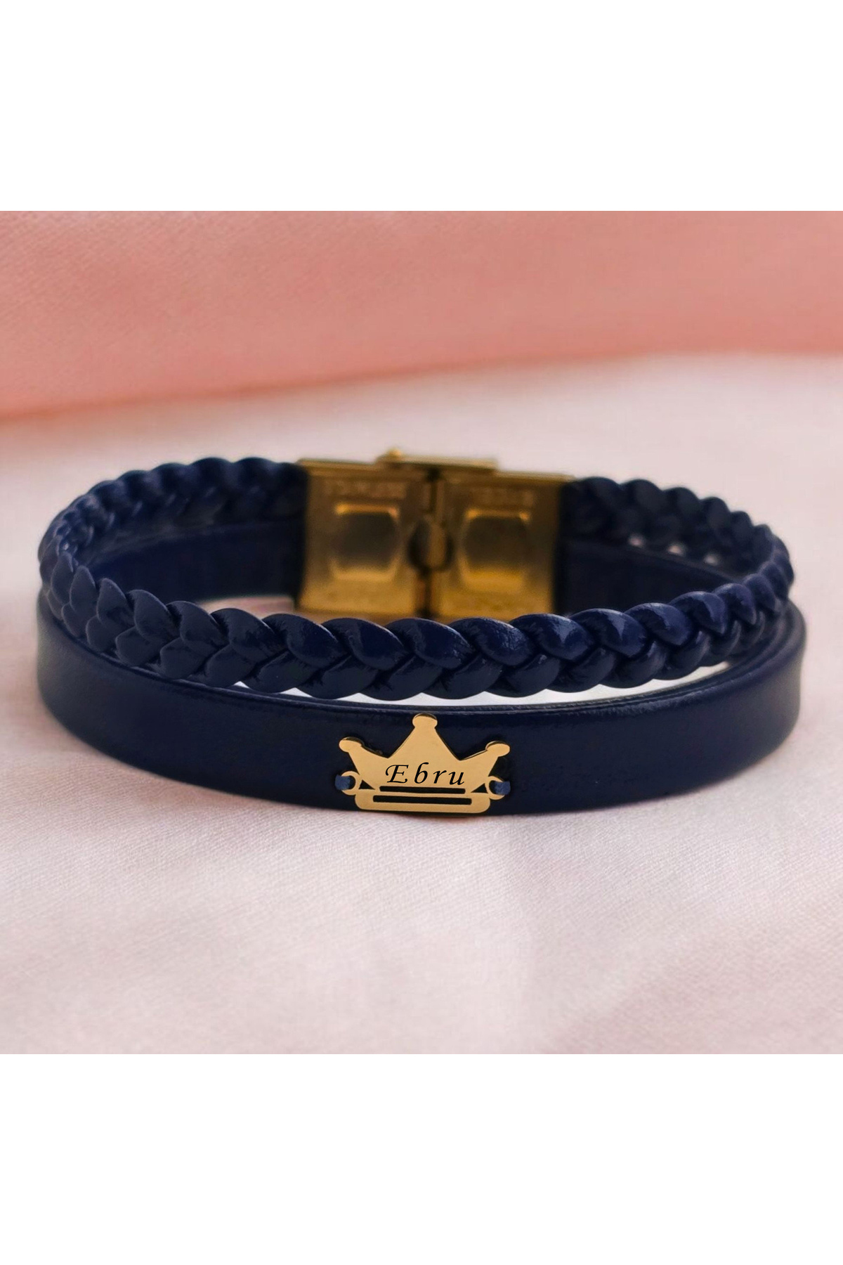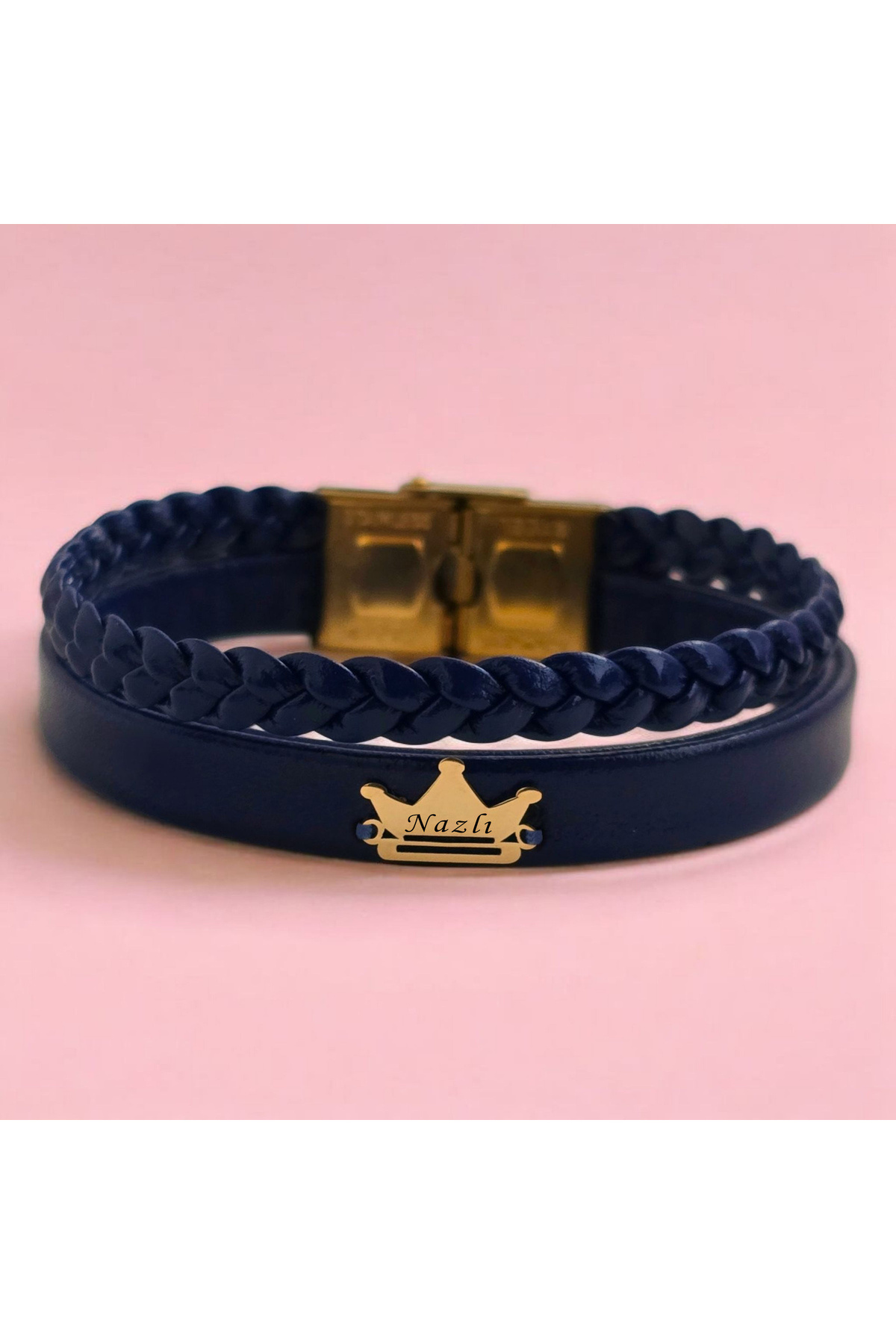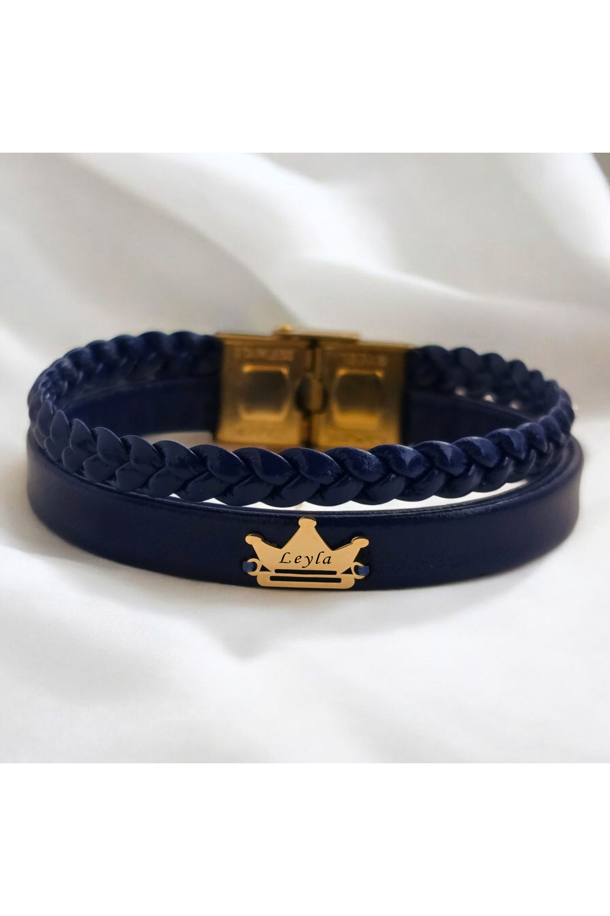 ,,,,,,,,, Deri Kısmı: Hakiki deriden yapılmıştır ,,,,,,,,, Tasarım: Taç motifli ve doğal lacivert derili ,,,,,,,,, Kişiselleştirme: Plaka üzerine kişiye özel isim, harf ve sembol yazılabilir ,,,,,,,,, Hediye Seçeneği: Özel tasarımıyla kişiye özel, anlamlı bir hediye ,,,,,,,,, Kullanım Alanı: Günlük kullanım ve özel günler için uygundur ,,,,,,,,, Üretim: El yapımı olup özenle tasarlanmıştır ,,,,,,,,, Cinsiyet: Kadınlar için uygundur ,,,,,,,,, Kapanış Tipi: Ayarlanabilir tokalı kilit mekanizması ,,,,,,,,, Ağırlık: Dayanıklı ve konforlu kullanım için idealdir ,,,,,,,,, Bilekliğin Uzunluk Ölçüsü: Kilitliyken 22 cm, Kilitsiz 19 cm — Önemli Not: Bilekliğin uzunluk ölçüsü, el yapımı ve doğal deri olması nedeniyle yaklaşık ±1 cm toleransa sahiptir ve kolayca ayarlanabilir.