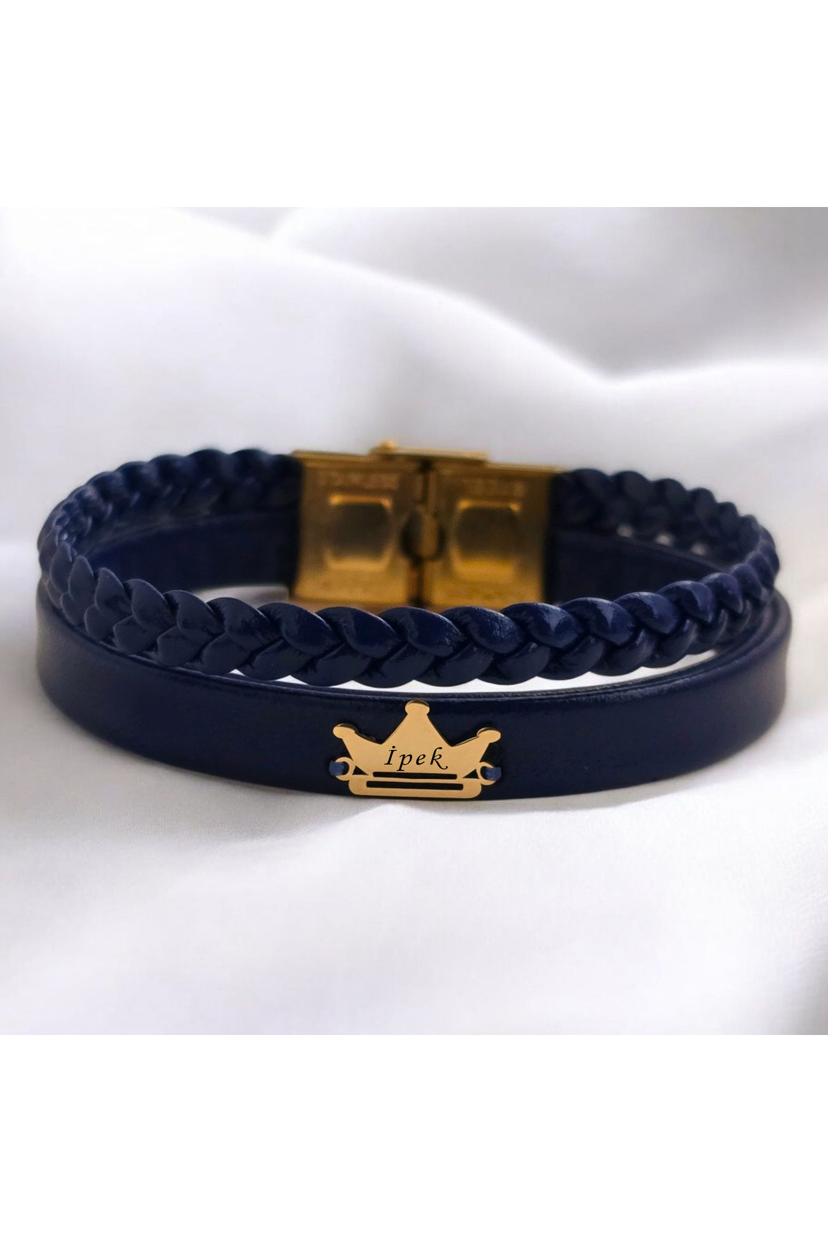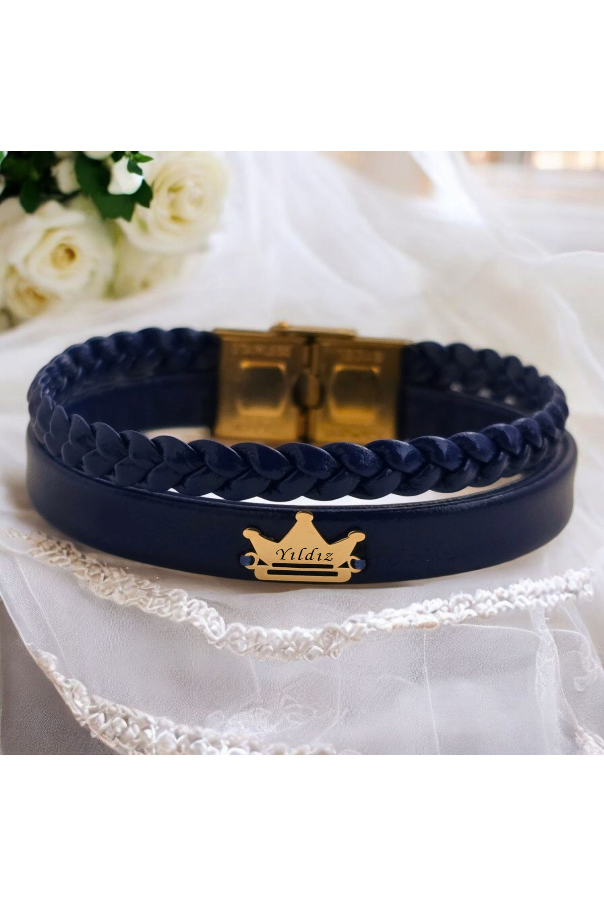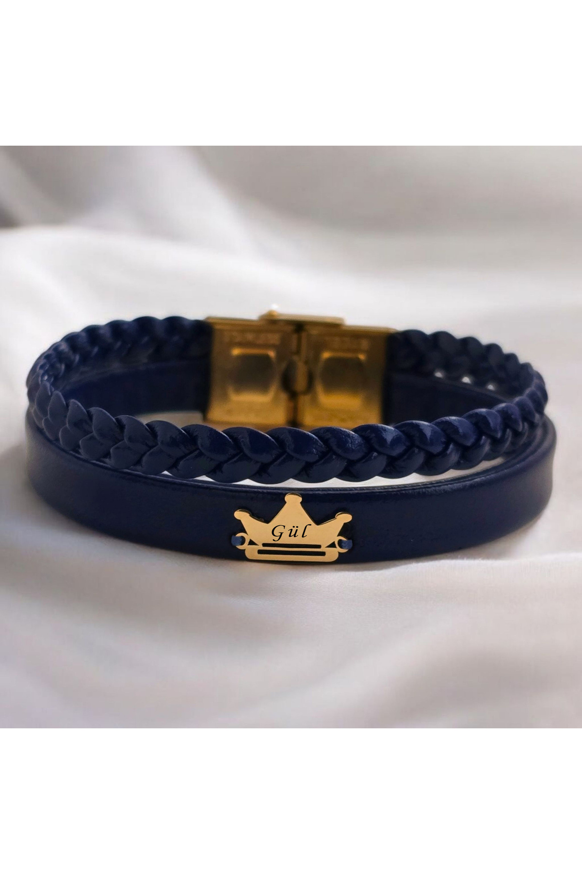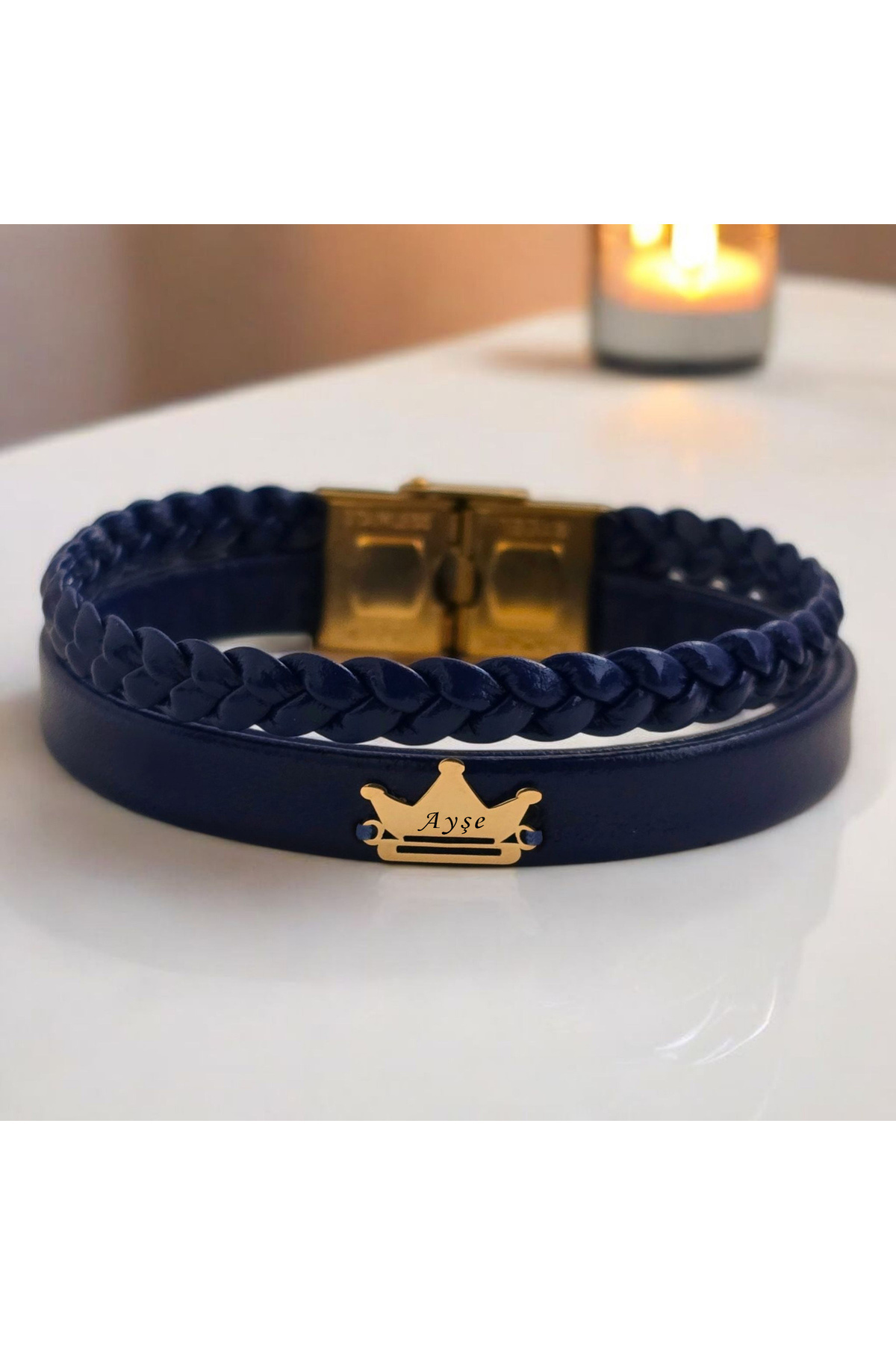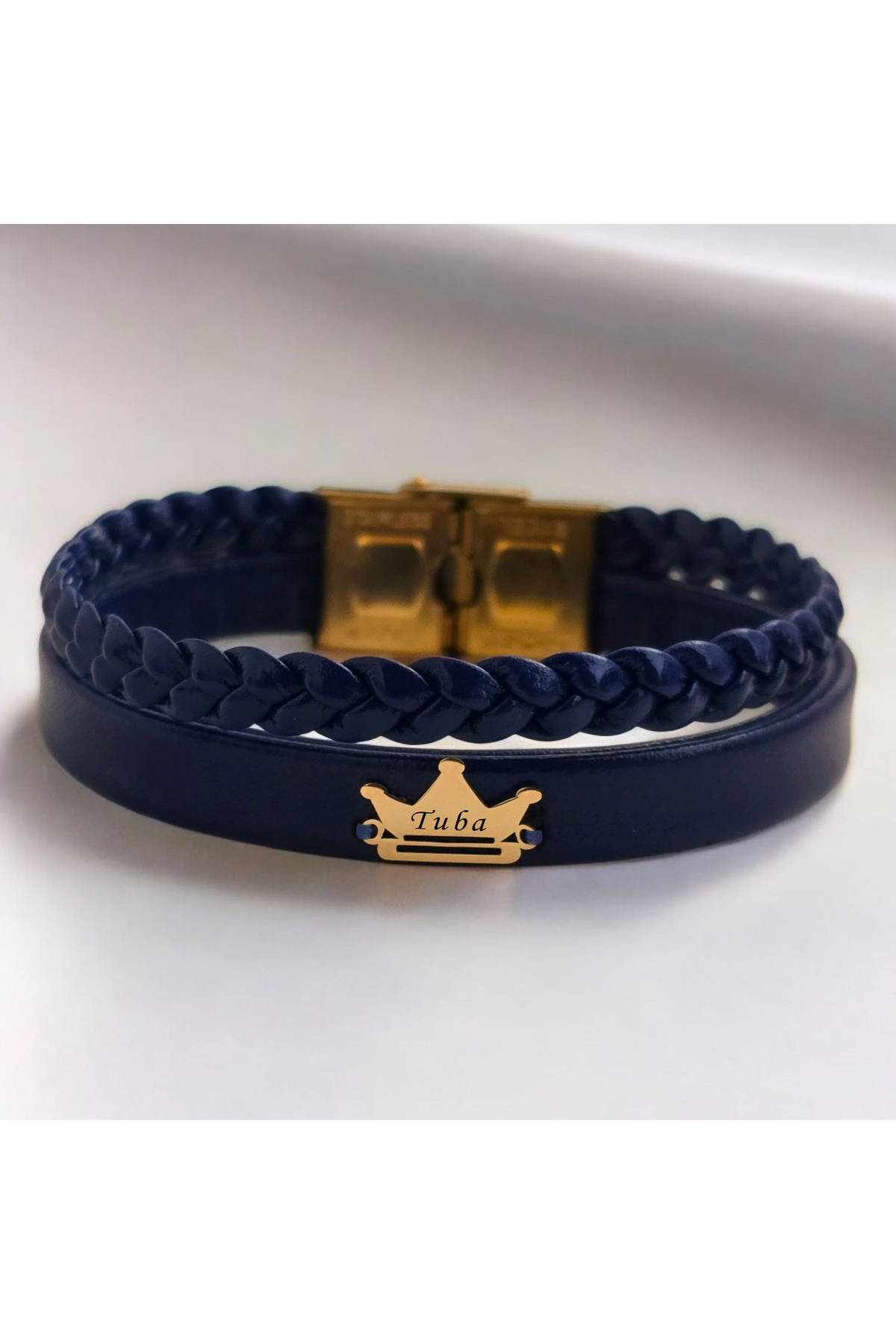 ,,,,,,,,, Deri Kısmı: Hakiki deriden yapılmıştır ,,,,,,,,, Tasarım: Taç motifli ve doğal lacivert derili ,,,,,,,,, Kişiselleştirme: Plaka üzerine kişiye özel isim, harf ve sembol yazılabilir ,,,,,,,,, Hediye Seçeneği: Özel tasarımıyla kişiye özel, anlamlı bir hediye ,,,,,,,,, Kullanım Alanı: Günlük kullanım ve özel günler için uygundur ,,,,,,,,, Üretim: El yapımı olup özenle tasarlanmıştır ,,,,,,,,, Cinsiyet: Kadınlar için uygundur ,,,,,,,,, Kapanış Tipi: Ayarlanabilir tokalı kilit mekanizması ,,,,,,,,, Ağırlık: Dayanıklı ve konforlu kullanım için idealdir ,,,,,,,,, Bilekliğin Uzunluk Ölçüsü: Kilitliyken 22 cm, Kilitsiz 19 cm — Önemli Not: Bilekliğin uzunluk ölçüsü, el yapımı ve doğal deri olması nedeniyle yaklaşık ±1 cm toleransa sahiptir ve kolayca ayarlanabilir.