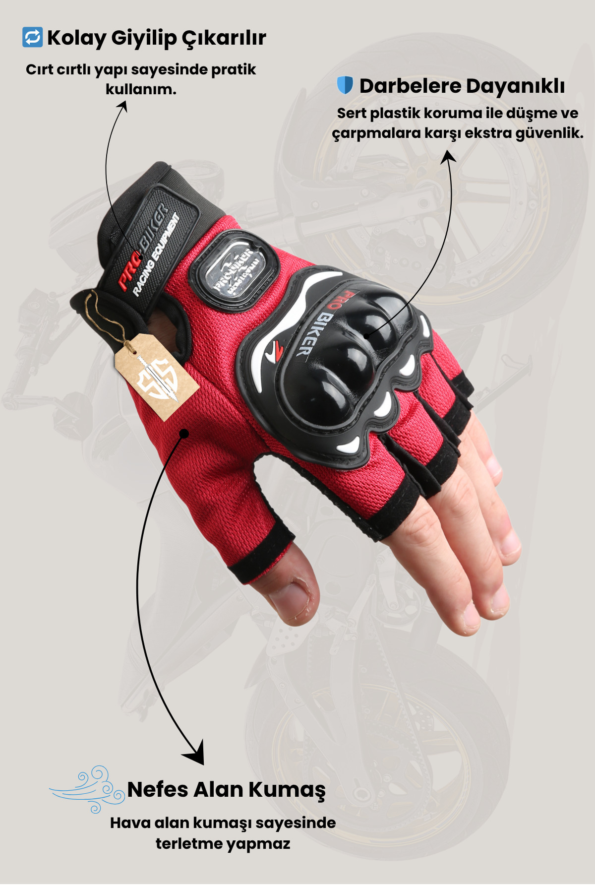 Kısa Parmak Profesyonel Korumalı Avuç içi Kaydırmaz Kırmızı Bisiklet/Motosiklet Eldiveni