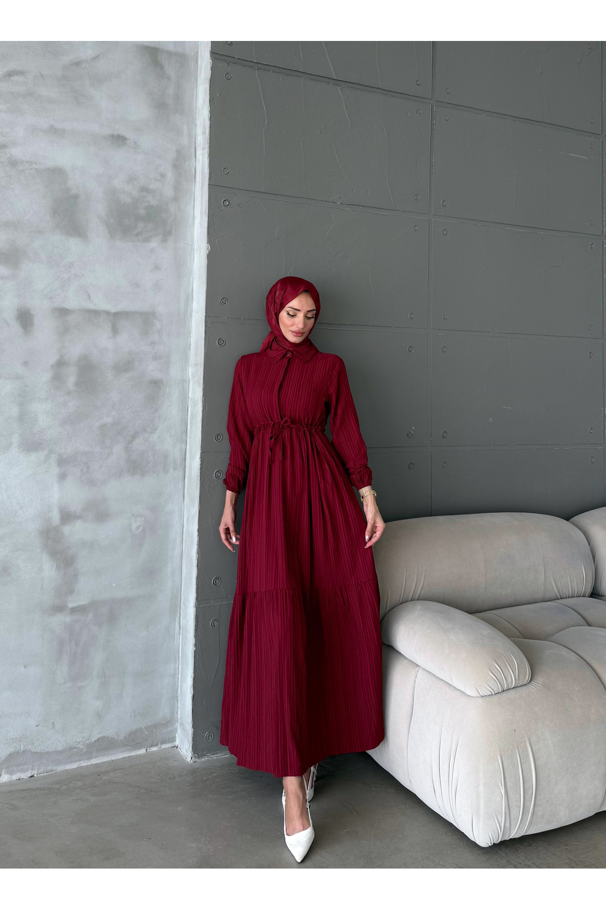 Tesettür giyim koleksiyonuna özel olarak tasarlanan bu elbise, her yaştan kadının gardrobunda yerini alabilecek çok yönlülükte üretilmiştir.