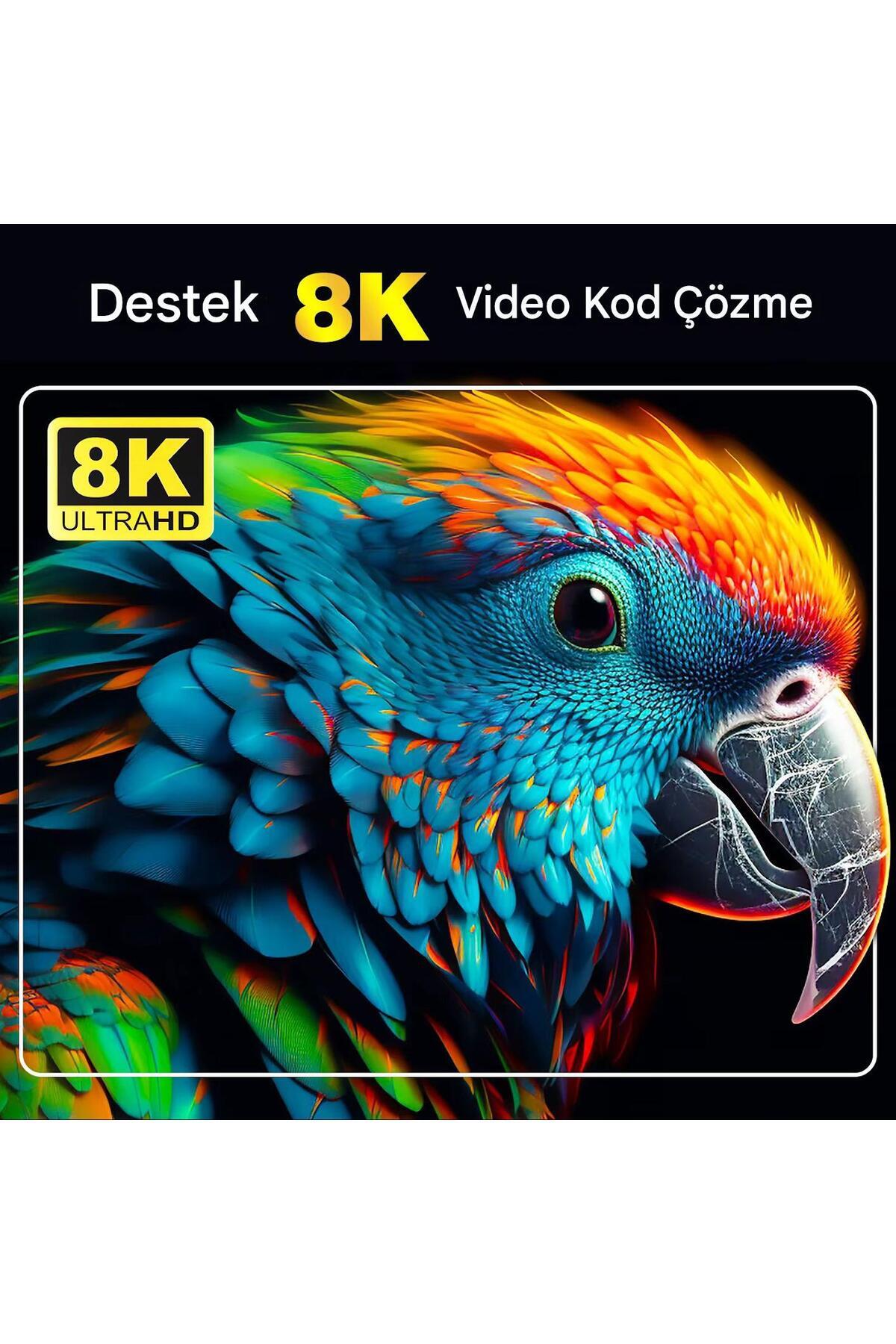 - 8K çözünürlük teknolojisi ile keskin ve net görüntüler sunar, böylece en sevdiğiniz filmleri ve programları yüksek kalitede izleyebilirsiniz.