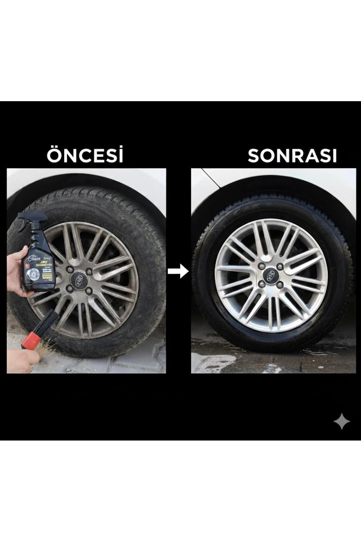 Uygulama sonrası jantlarınız göz kamaştırır! 🖌️ Üstelik Özel Fırça HEDİYE! Ürünle birlikte gelen detay temizlik fırçası sayesinde dar ve ulaşılması zor alanlara bile kolaylıkla ulaşabilirsiniz.