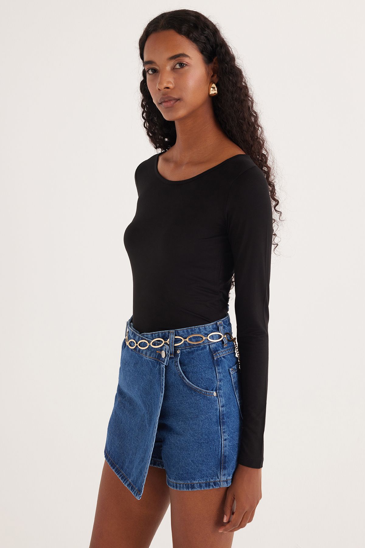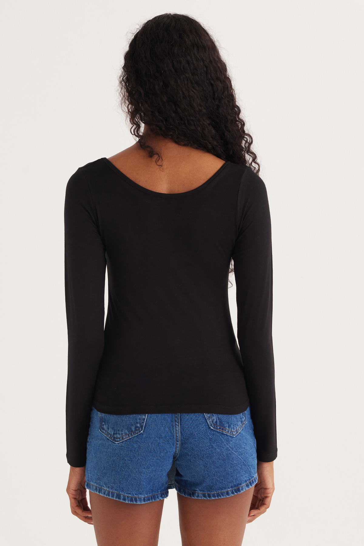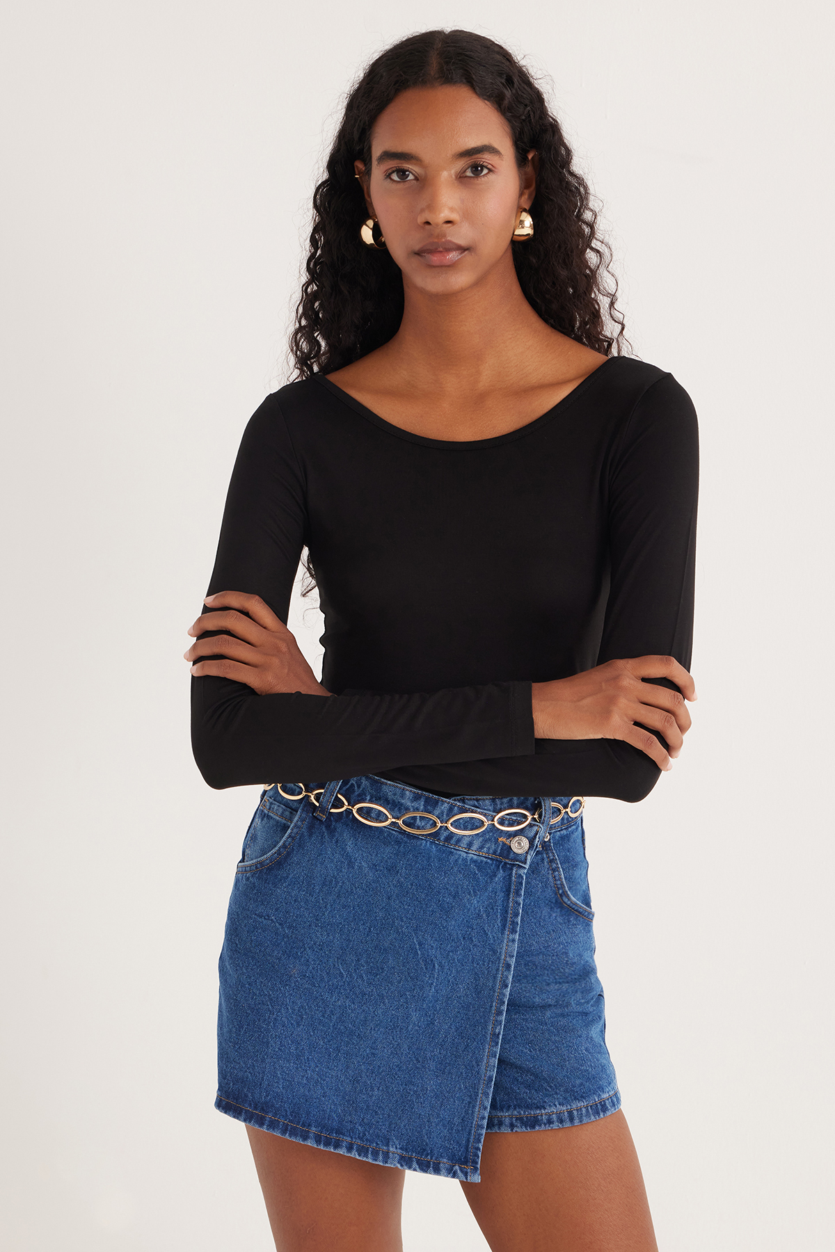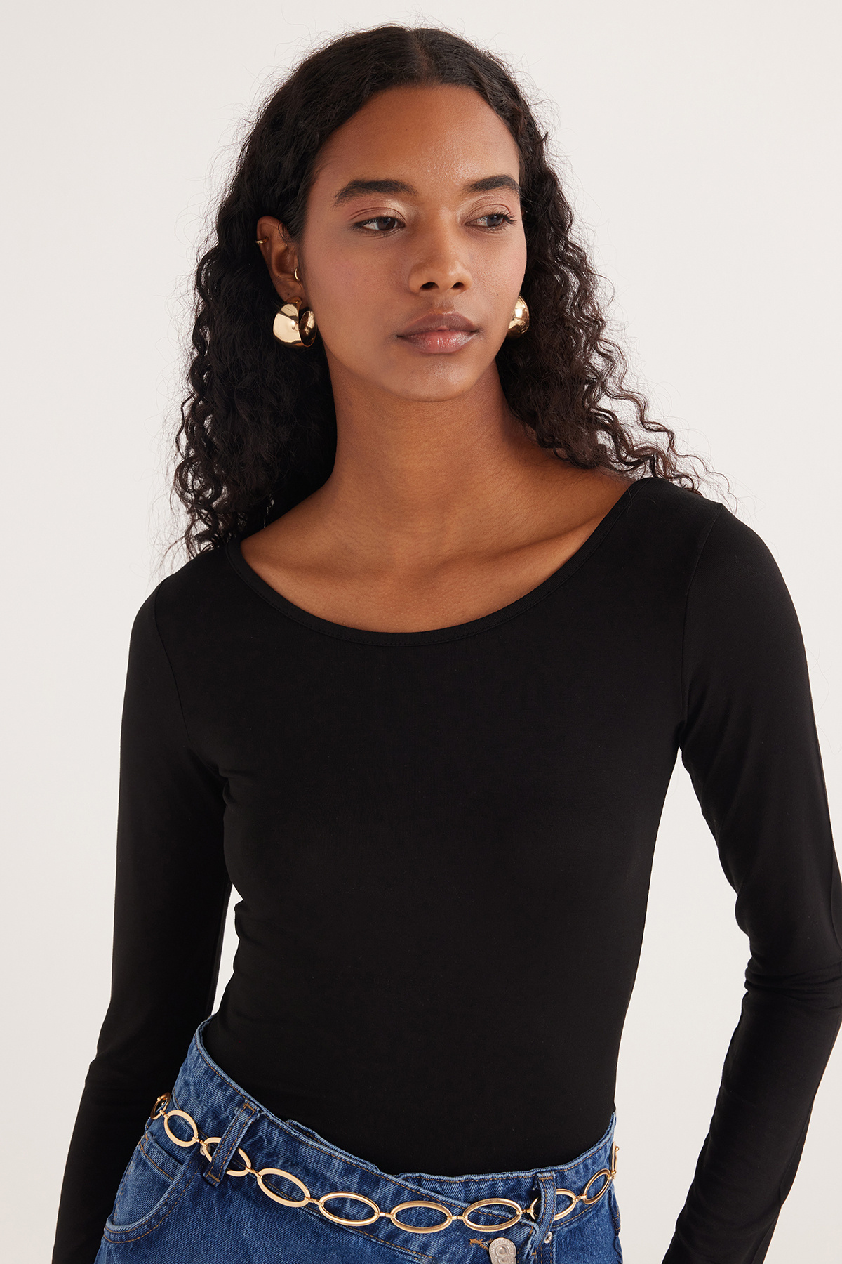 Kadın Slim Fit Dar Kesim Uzun Kollu Viskon Siyah Bluz