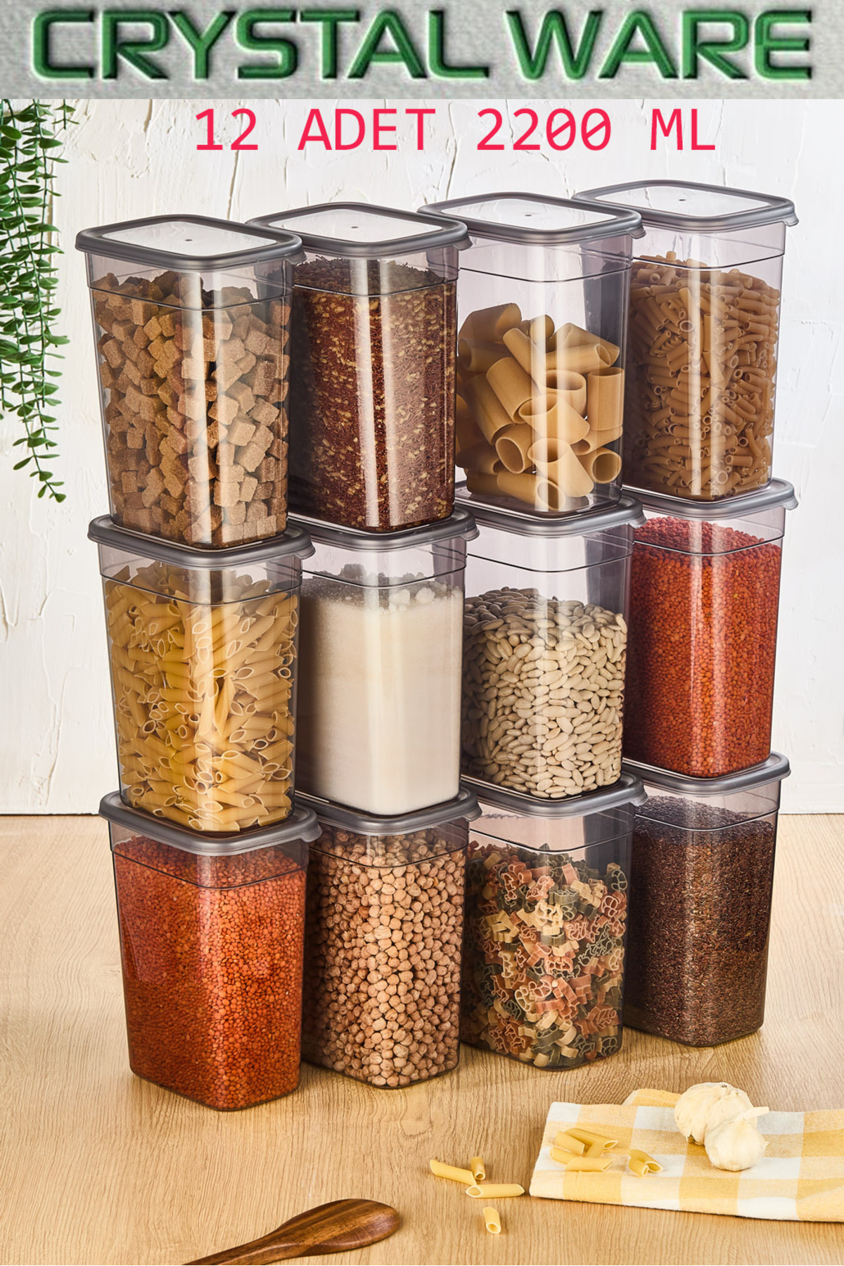 - Her biri 2,2 litre hacme sahip olan dikdörtgen erzak saklama kapları, mutfakta düzenli depolama imkanı tanır.