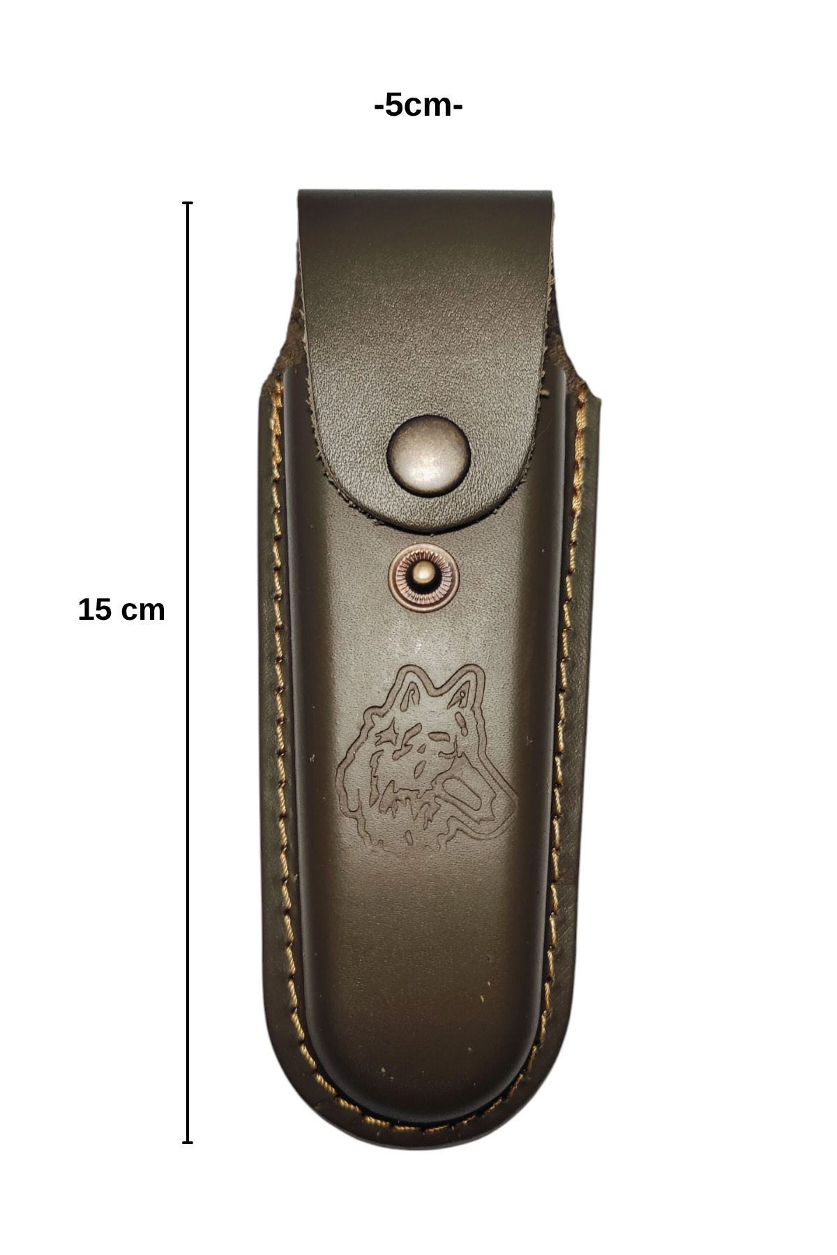 Malzeme: %100 Hakiki Deri Boyut: 15 cm uzunluk Renk: Koyu kahverengi ton El yapımı dikiş detayları Metal çıtçıt kapama Bel kemerine takılabilir tasarım Yerli üretim Çakı, kamp bıçağı, av bıçağı gibi küçük ve orta boy bıçaklar için uygundur Outdoor severlerin, doğa tutkunlarının ve koleksiyoncuların vazgeçilmezi olacak bu deri kılıf
