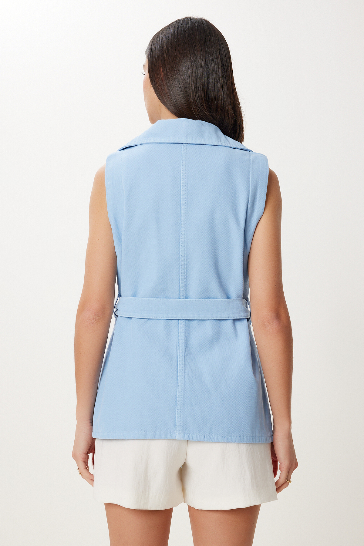 Kadın Mavi Şık Düğmeli Gabardin Yelek PB00048