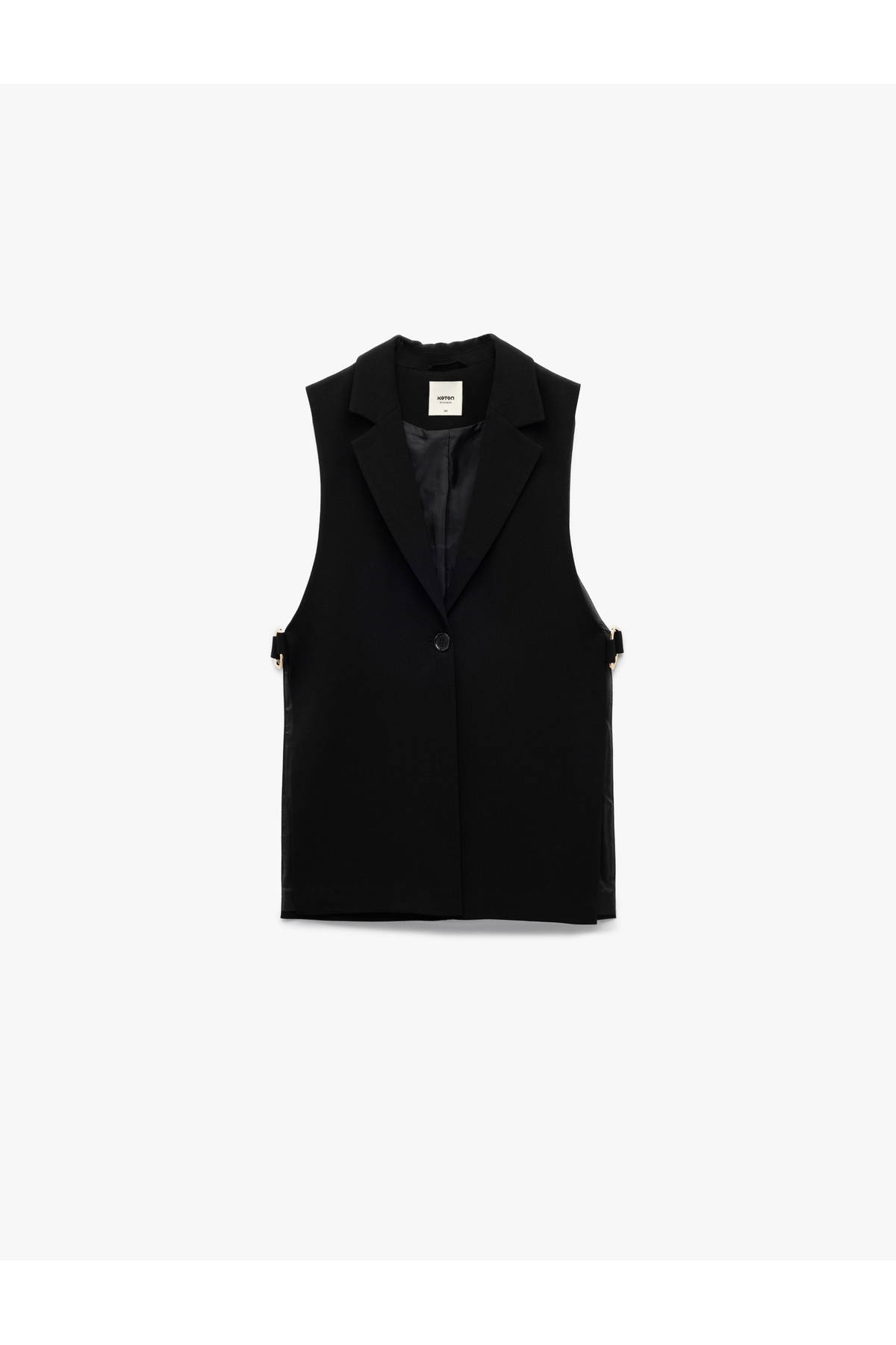 Krep Kumaş Aksesuarlı Yandan Pencere Detaylı V Yaka Düğmeli Uzun Yelek