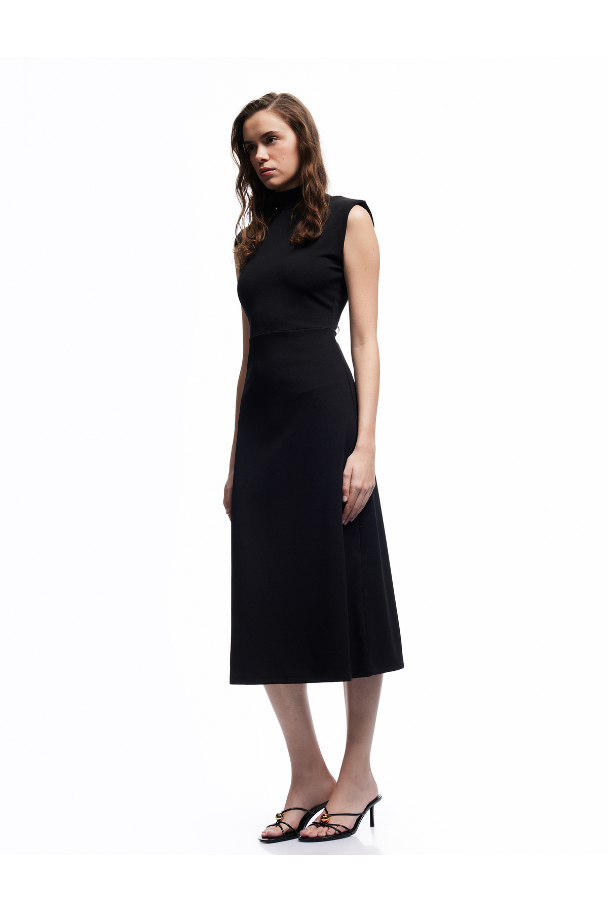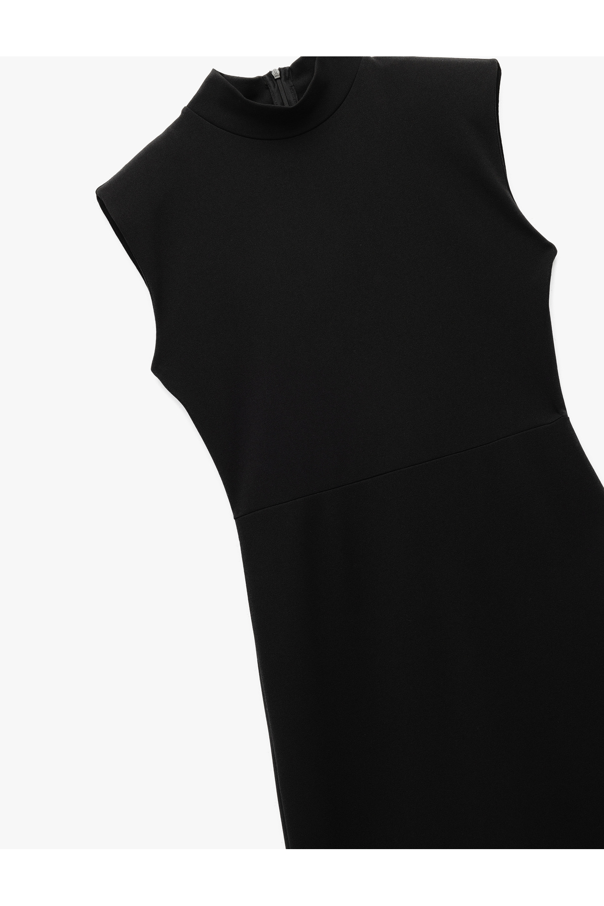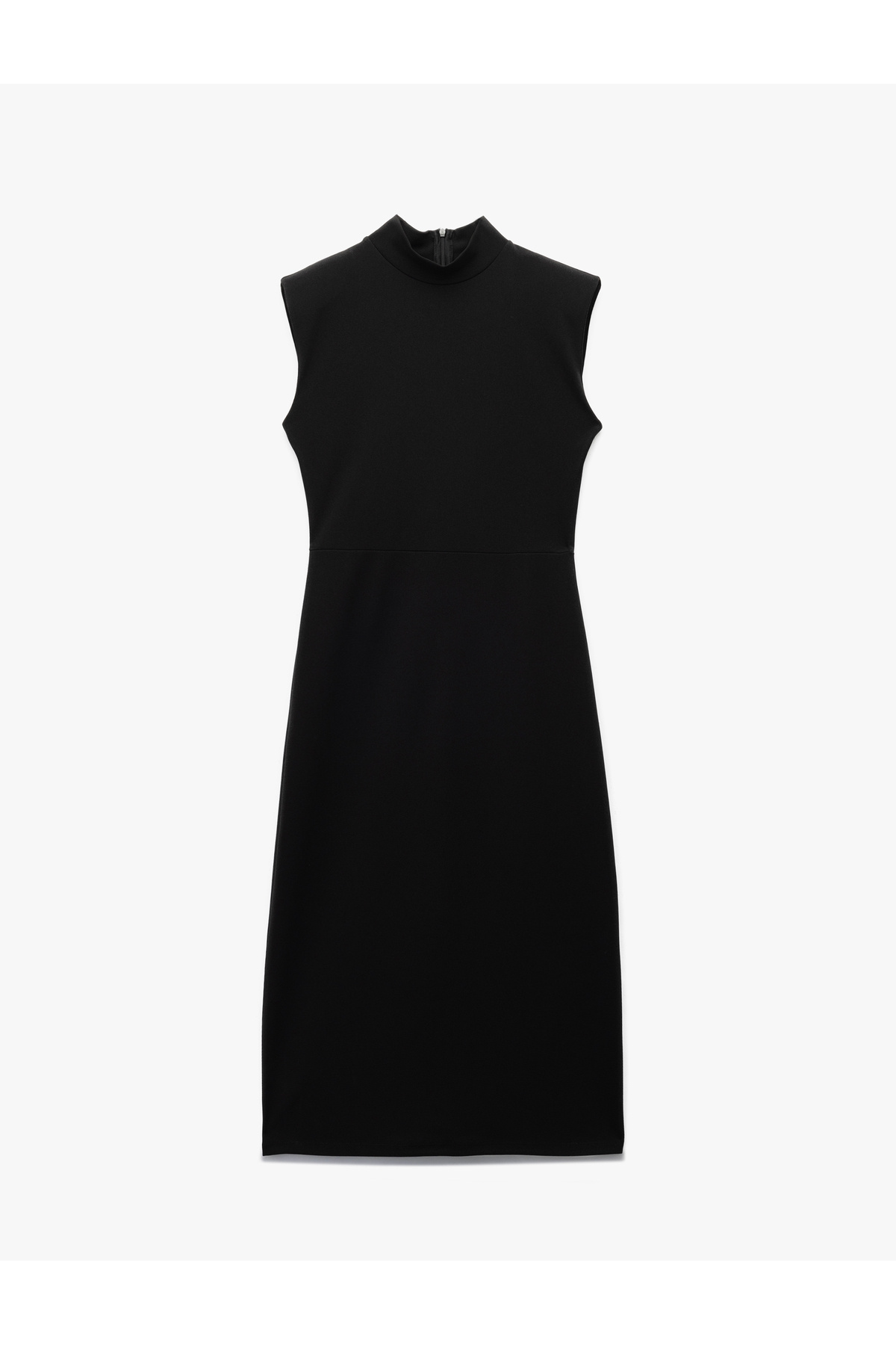 Scuba Krep Kumaş Slim Fit Dik Yaka Midi Boy Kolsuz Elbise