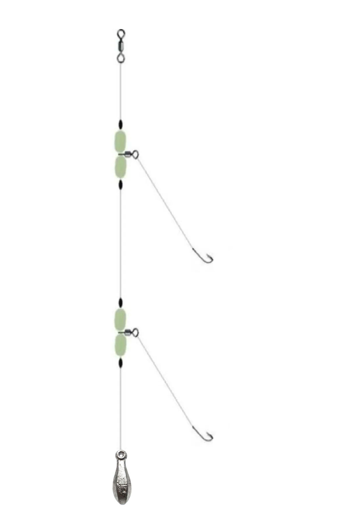 1522 siyah 1 numara iğne 30 gr armut kurşun 9 no fırdöndü 0,30 mm misina, 100-150 cm arası beden uzunluğu 2 iğne kullanılmış olup, takım gezerlidir, stoperler de glow özelliği vardır, 2 takım gönderilecektir.