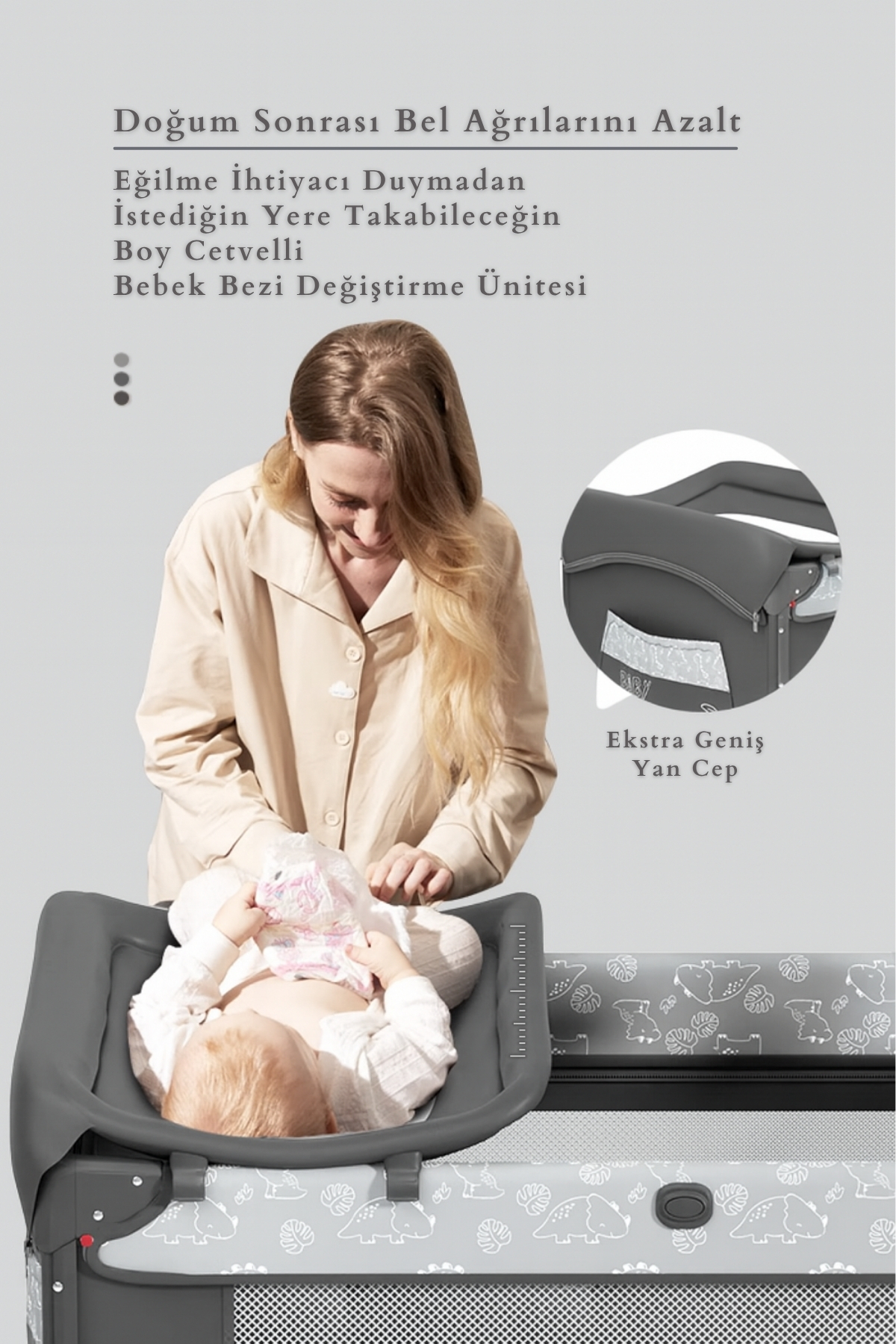WildNest 3in1 Anne Yanı Park Yatak Katlanır Beşik, Tekerlekli, Yan Açılır, Müzik+Oyuncak+Cibinlik