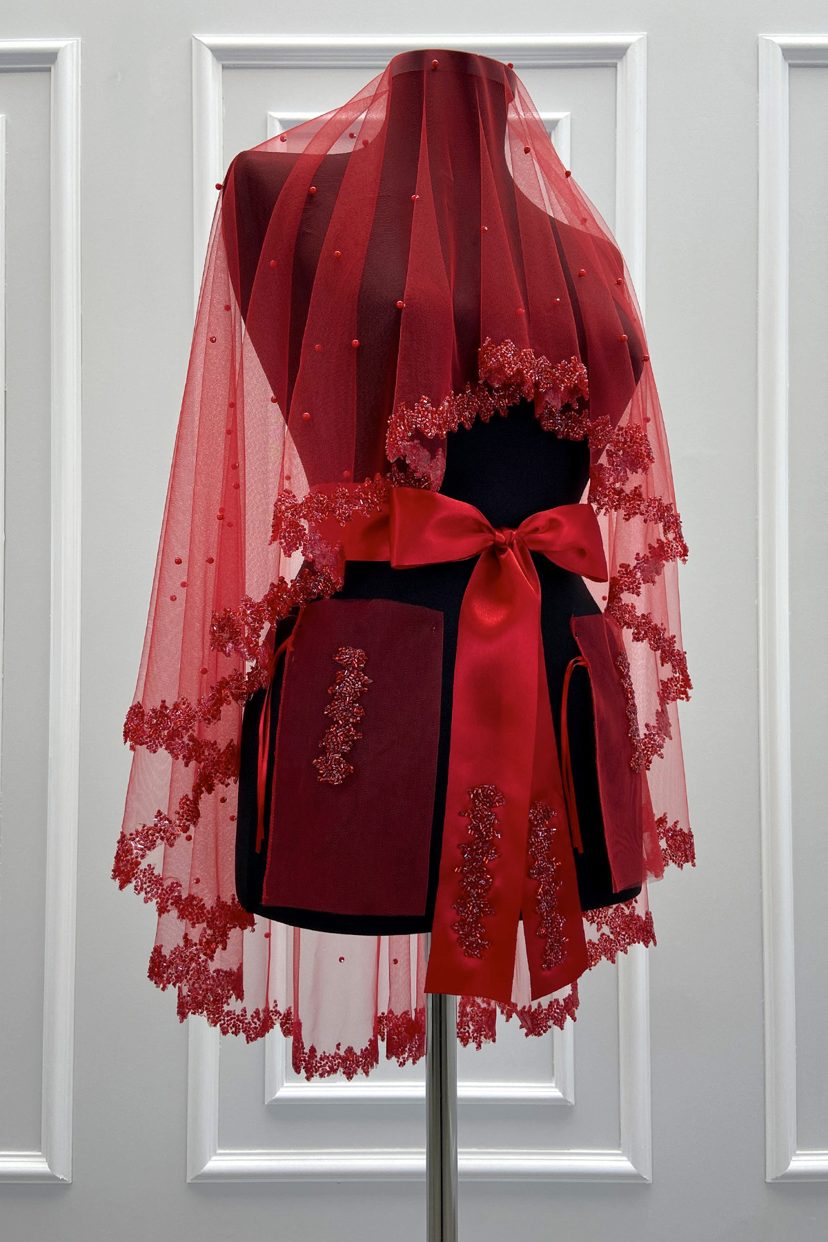 Gelin Duvak Seti, Cam Boncuk Ve İncili, Kına Gecesi Duvağı Yüz Örtüsü Seti 6 Parça