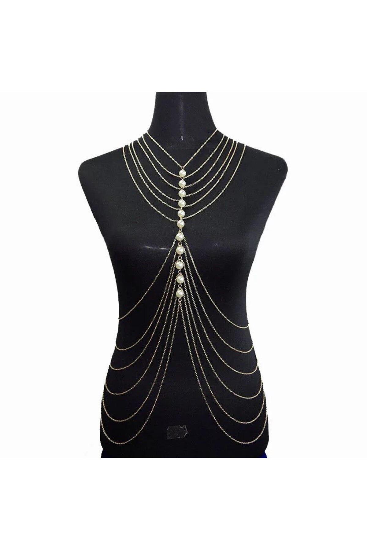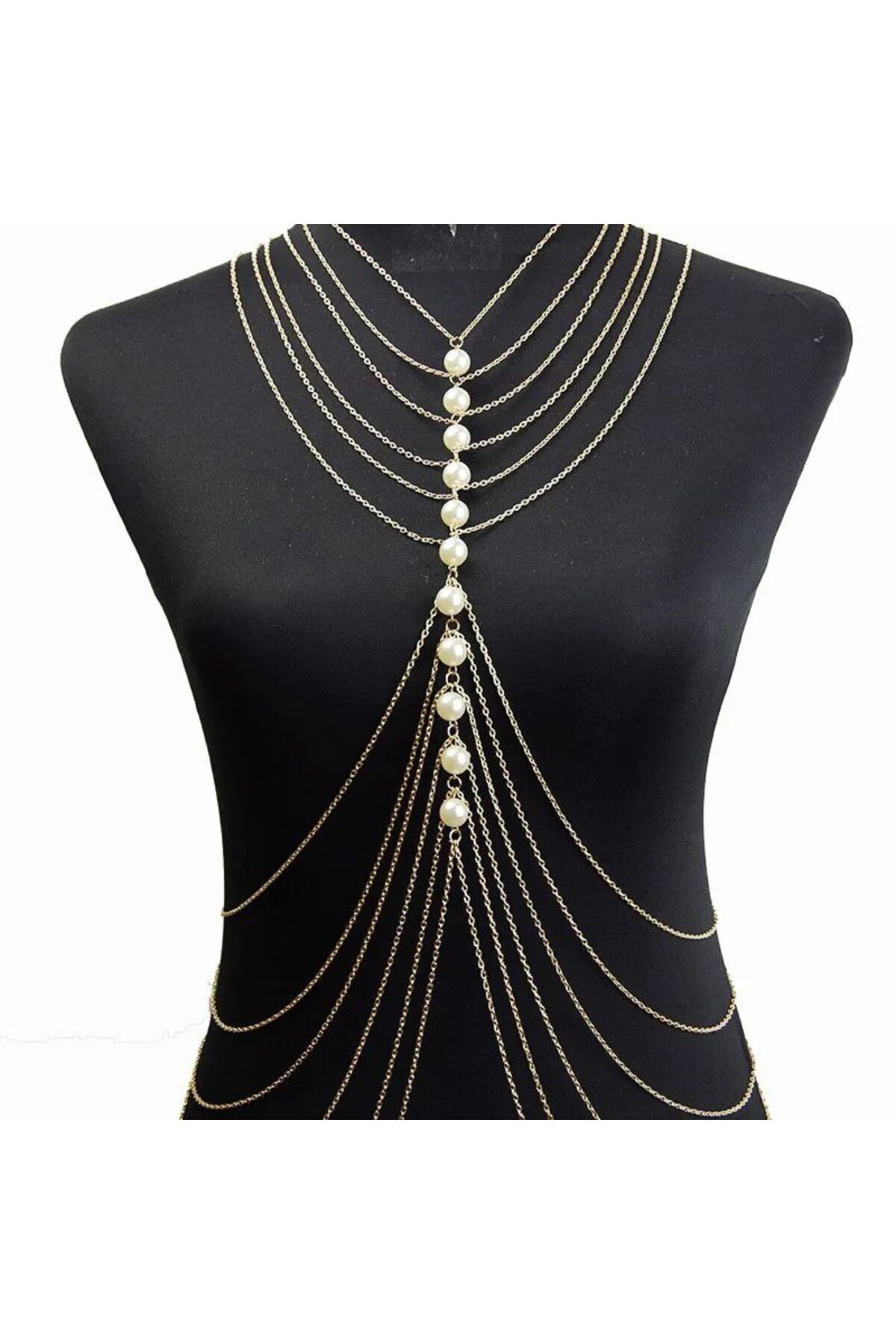 Tarzınızı tamamlayacak olan bu zarif vücut zinciri, inci detaylarıyla modern bir görünüm sunar.