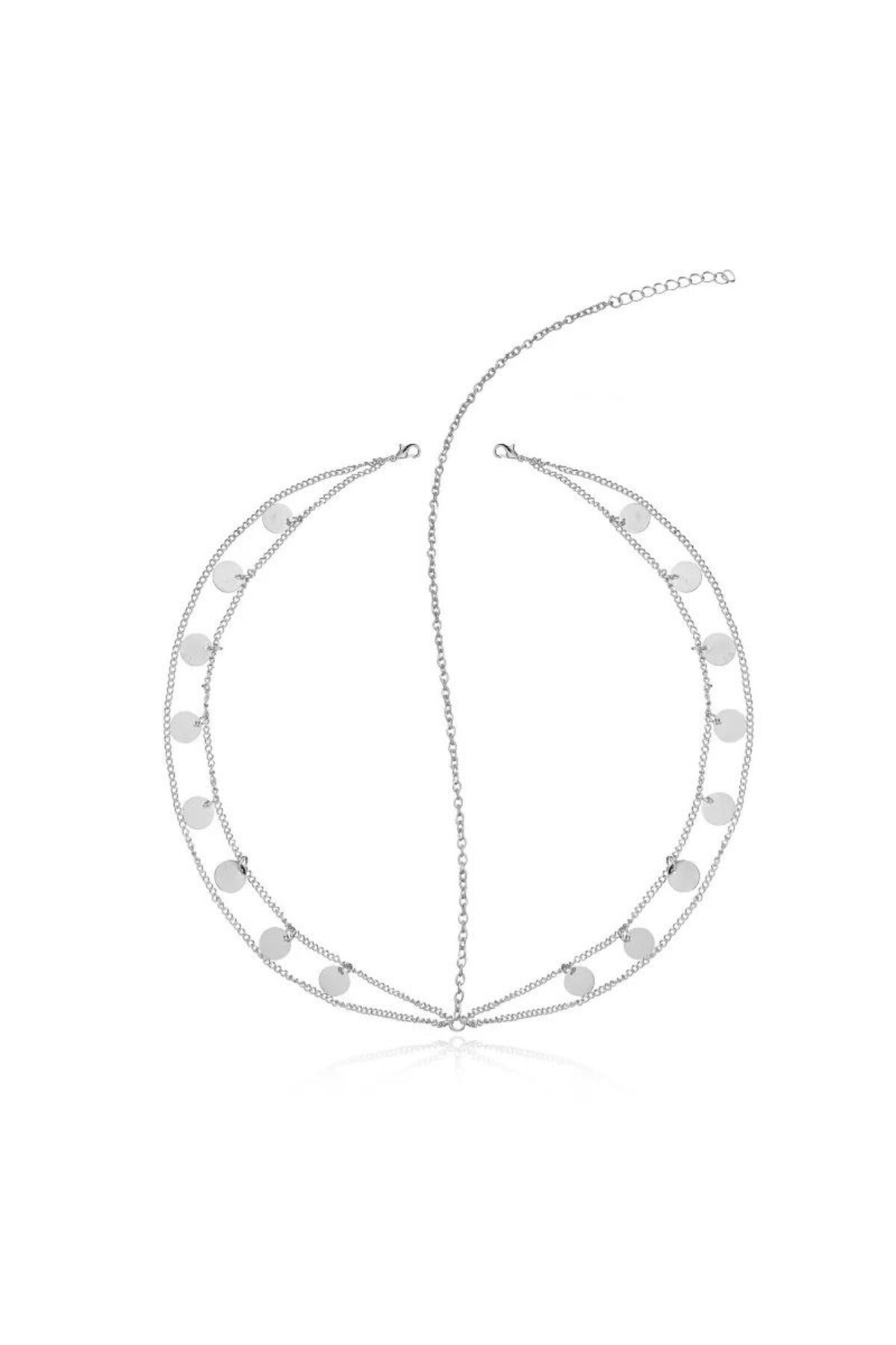 Tarzınızı tamamlayacak şık metal daire zinciri kafa aksesuarı, her anınıza zarafet katmak için tasarlandı.