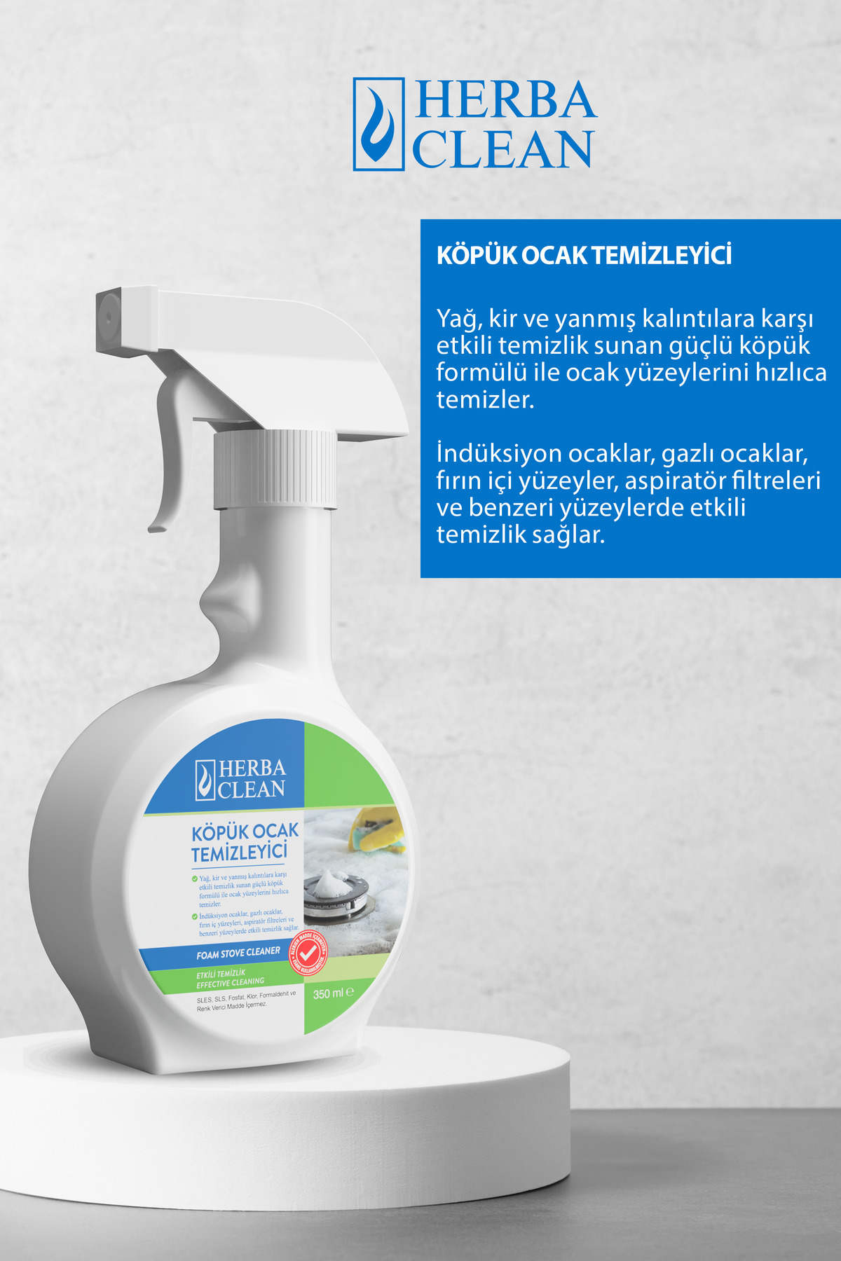 Günlük kullanım için ideal, köpük formundaki temizleyici ile ocaklarınızda hızlı ve etkili bir şekilde kirleri çıkarın.