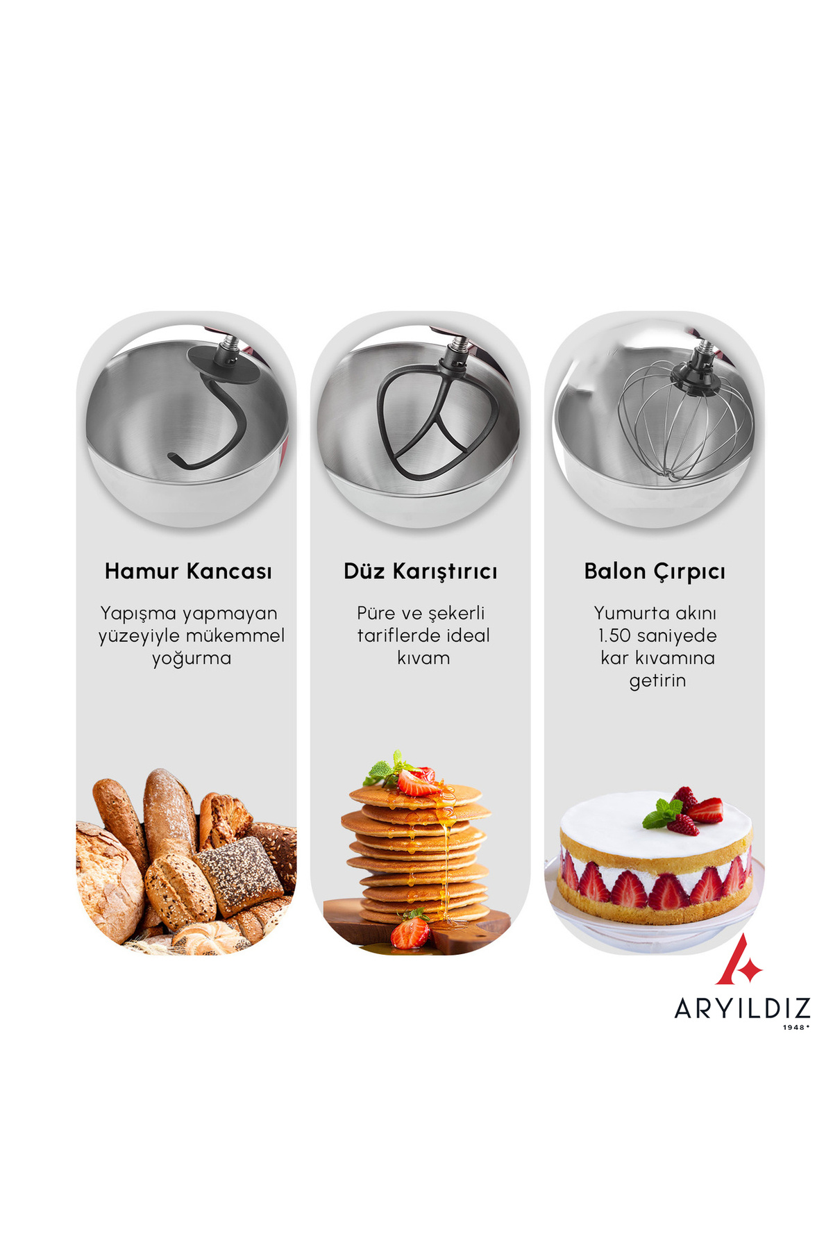 - 10 litrelik geniş iç hacmiyle hamur işleri, kek tarifleri gibi yoğun karışımlara elverişlidir.