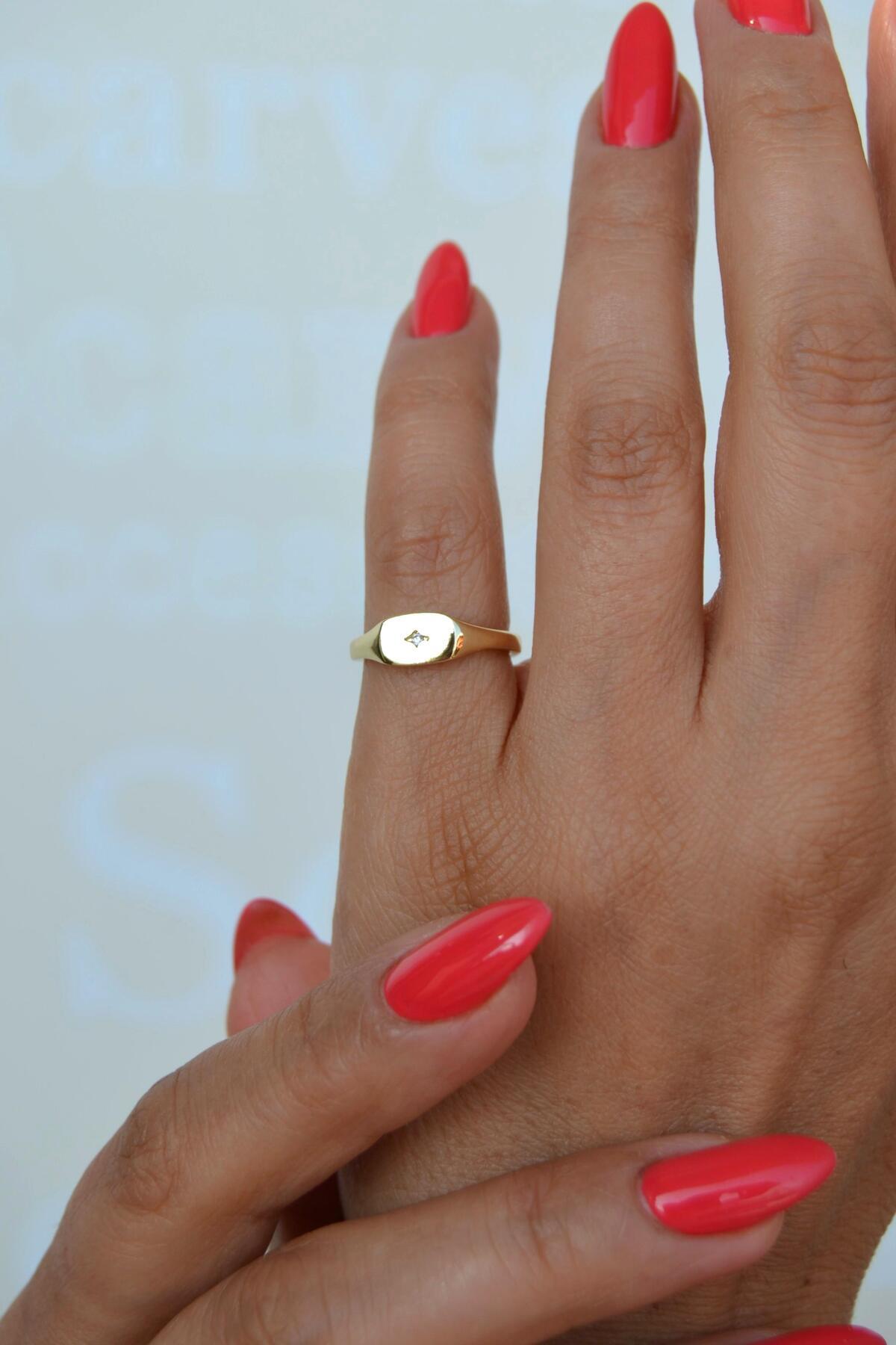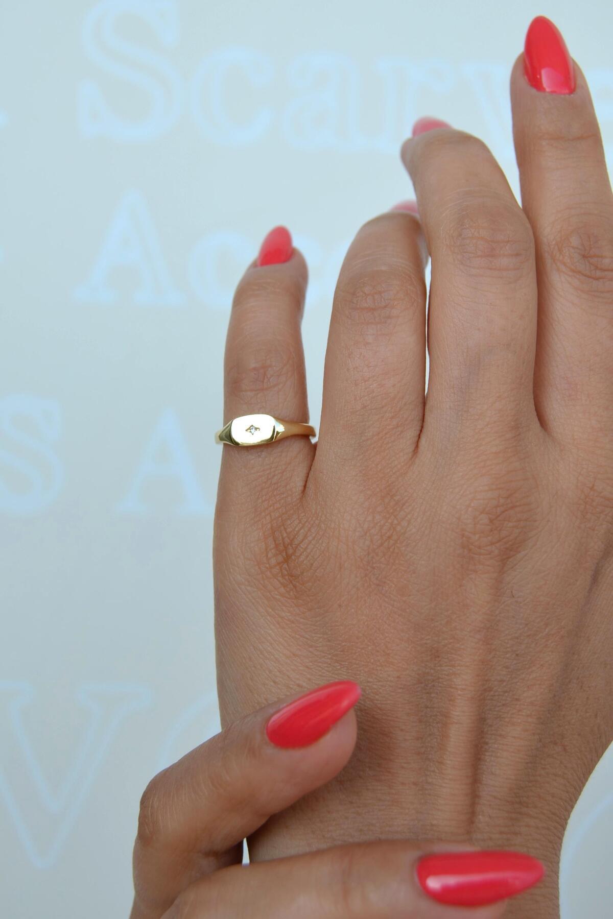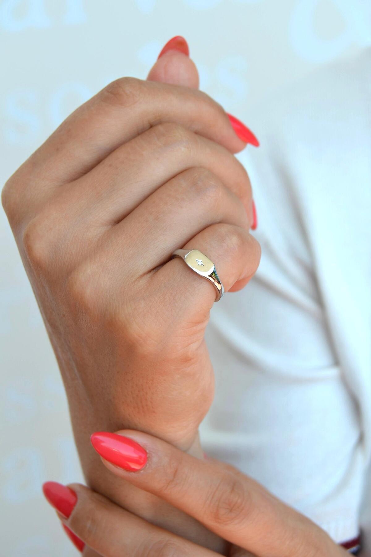 Kuzey Yıldızlı Dörtgen Model Serçe Parmak Yüzüğü