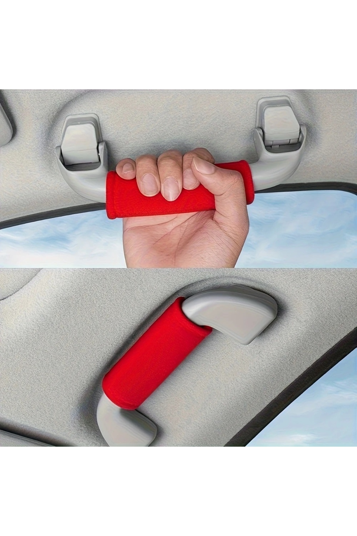Kırmızı 4 Adet Araç içi Tutunma Kolu Kılıfı Şık Tasarım Oto Aksesuar Polar Kumaş Çırtlı