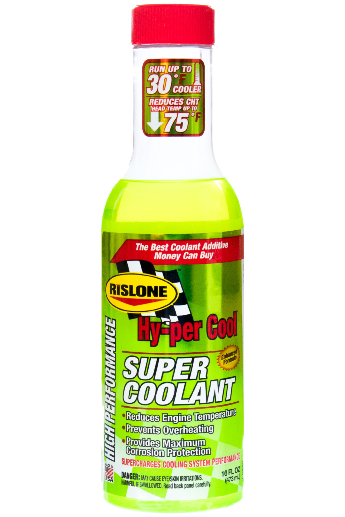 Rislone®, Hy-per Cool™ Süper Soğutucu Sıvı, su/soğutucu karışımının yüzey gerilimini düşüren ve soğutma sisteminizin ısı transferini iyileştirmesini sağlayan Yeni Teknolojili kimyasal maddeler içerir. Bu, sisteminizin ısıyı daha verimli bir şekilde dağıtarak, radyatör tarafından soğutulmasını sağlar ve motor sıcaklıklarını 14 °C'ye kadar düşürerek aşırı ısınmasını önlemeye yardımcı olur. Hy-per Cool Süper Soğutucu Sıvı, su pompası contalarını kayganlaştırır ve korur, alüminyum da dahil olmak üzere soğutma sistemlerinde yaygın olarak bulunan TÜM metallerin korozyonunu önlemeye yardımcı olur. TÜM türleri ve TÜM antifriz soğutma sıvısı renkleri ile uyumludur.