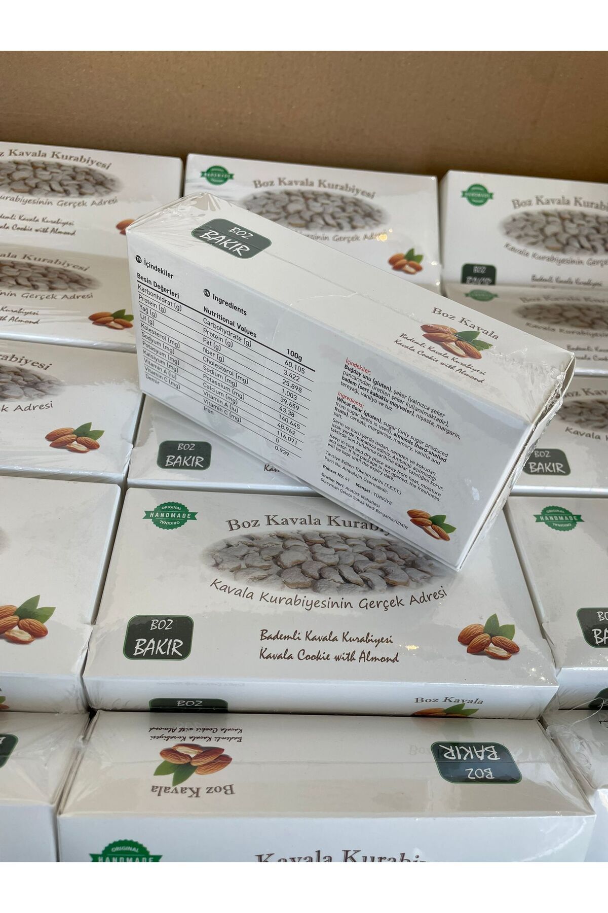 - Boz Kavala Kurabiyesi Kavala Kurabiyesinin Gerçek Adresi Bol Bademli (En az 10%) Badem içerir Tereyağlı ve doğal ürünler kullanılarak üretilmiştir Katkı maddesi içermez İçindekiler: Buğday unu(gluten içerir), şeker(yalnızca şeker pancarından üretilen şeker kullanılmaktadır), badem, nişasta, margarin, tereyağı, vanilya ve tuz