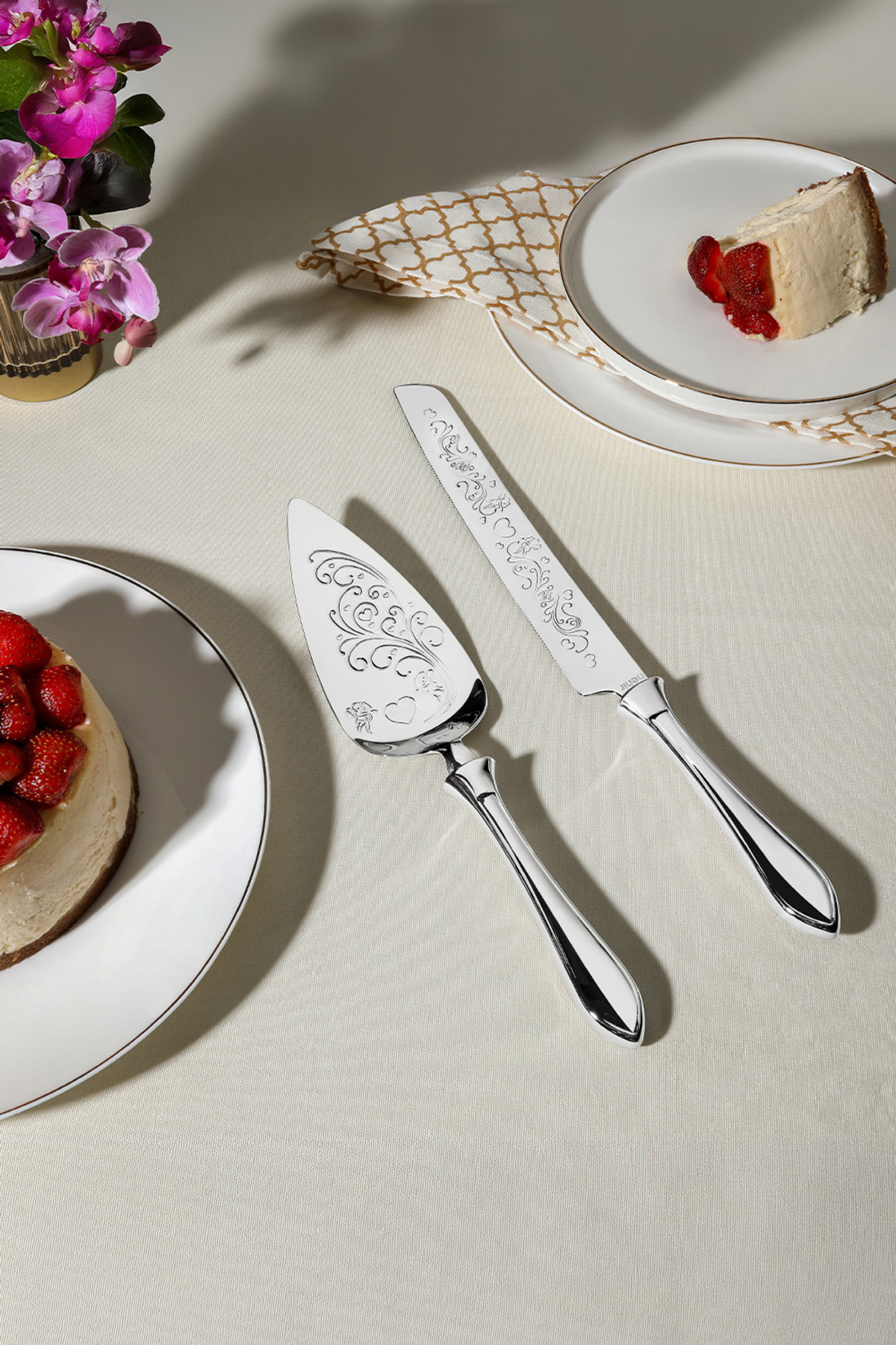 • Set İçeriği: 1 adet kek spatulası ve 1 adet kek bıçağı • Malzeme: 304 kalite paslanmaz çelik • Temizlik: Bulaşık makinesinde yıkanabilir • Kullanım Alanı: Kek, pasta ve tatlı sunumları için ideal • ve Değişim: ve değişim imkânı mevcuttur Şık gravür detayları ile estetik bir dokunuş sunan Defne kek servis seti, düğün, nişan ve özel günlerde hediyelik olarak da mükemmel bir seçenektir.